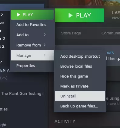 然后,再次右键点击游戏,选择【管理】>【卸载】,以确保不会出现问题。