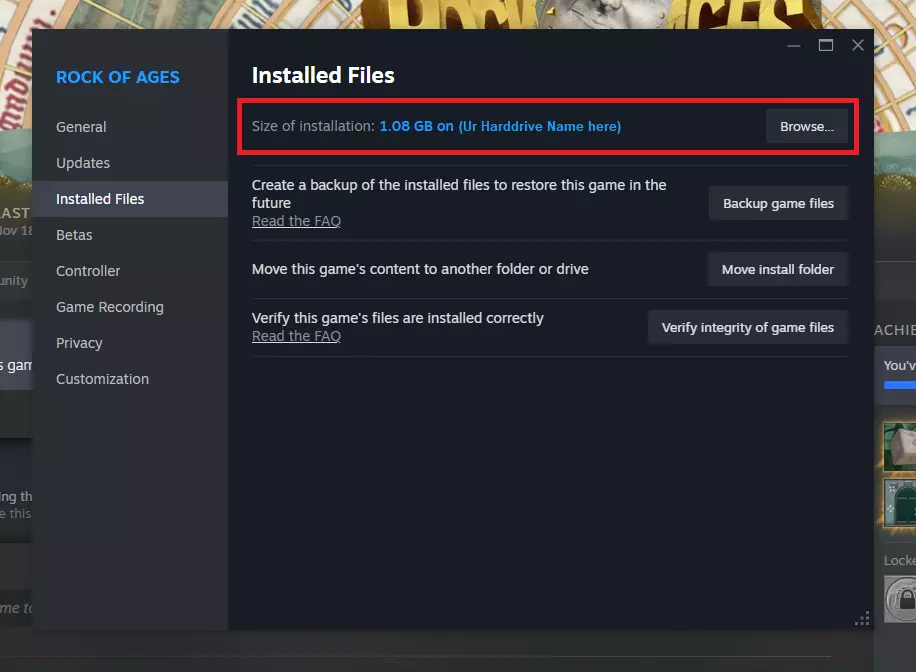 在那里,你应该能找到你的【摇滚巨轮】文件夹,现在你只需选中它并删除即可。 如果你将游戏安装在了其他位置(并且不记得具体位置),你可以再次进入属性页面,然后依次点击【已安装文件】和【浏览...】来轻松找到它。