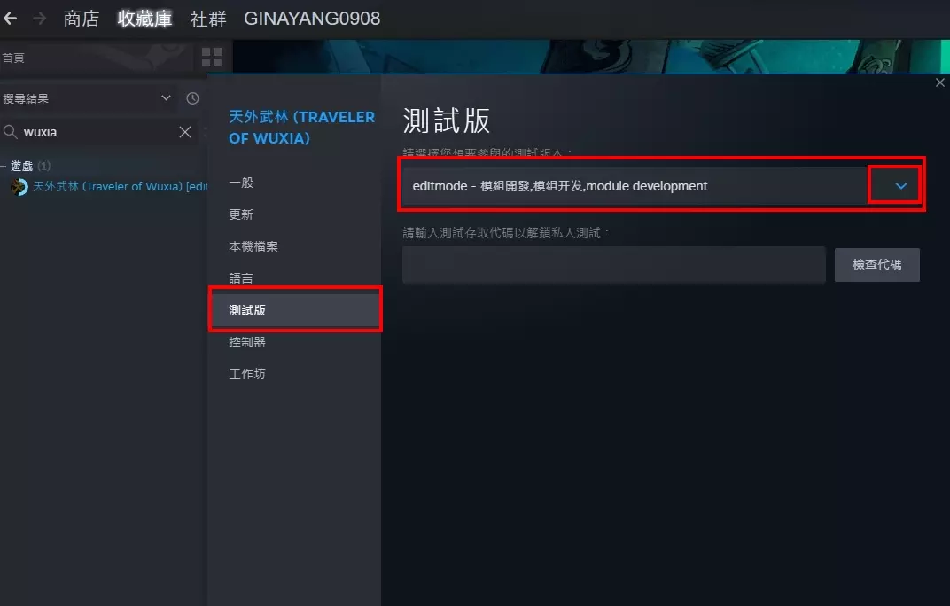 使用EditMode版本开发MOD 切换EditMode版本 在游戏库的【天外武林】上,右键点击【属性】。