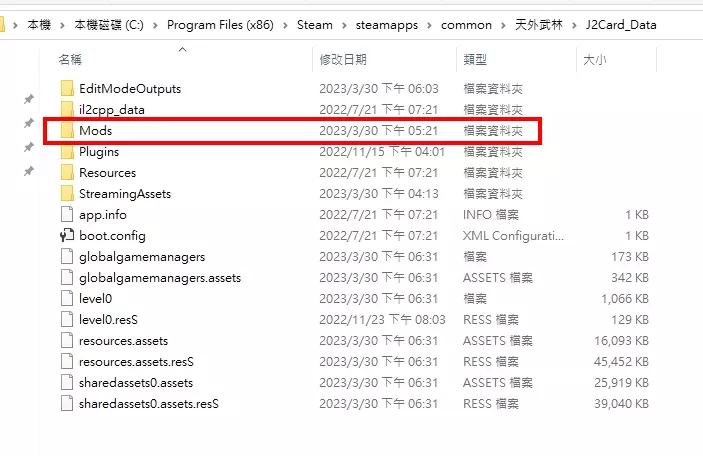 回到上一层,进入【Mods】路径。