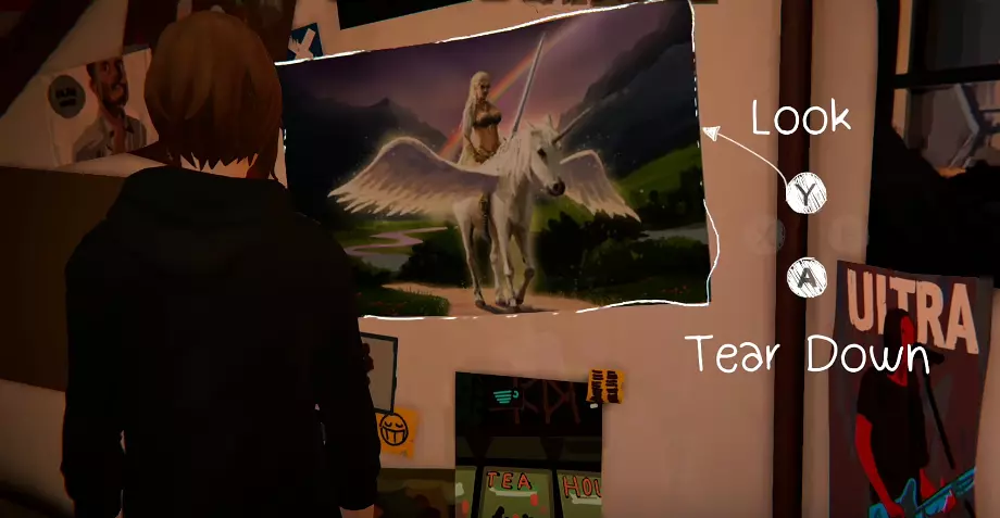 涂鸦3 克洛伊的房间 需要在独角兽海报的位置进行涂鸦,克洛伊需要把那张海报从墙上撕下来。