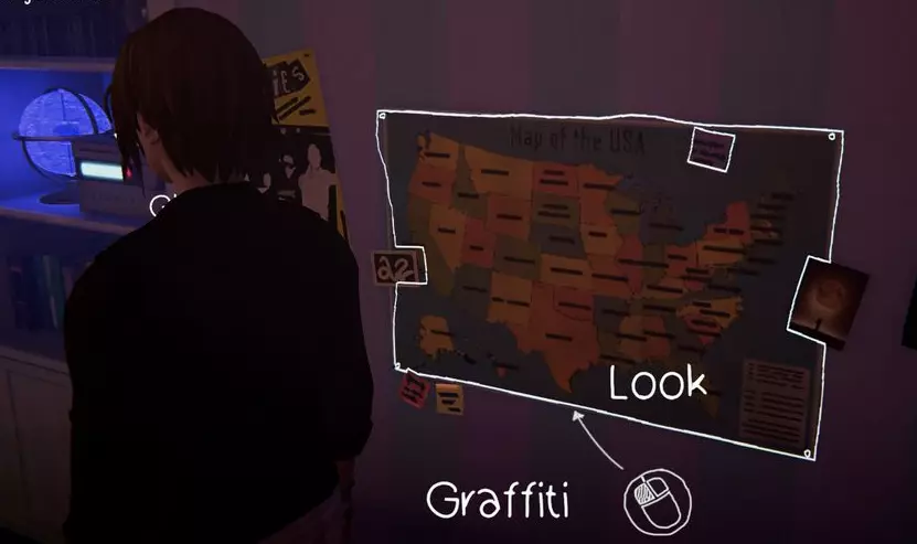 涂鸦1 - 瑞秋的房间 需要在床对面挂着的美国地图上进行涂鸦。
