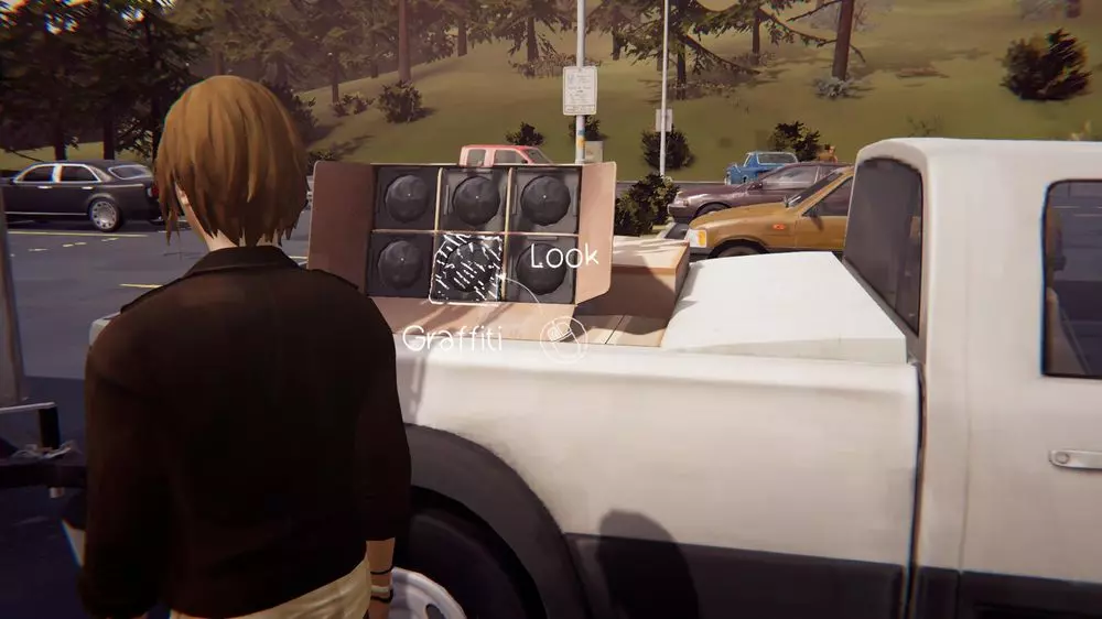 涂鸦5 - 克洛伊的皮卡车 需要在克洛伊修理发动机时,在她的皮卡车引擎盖上涂鸦。为此,需要拔出并吹掉燃油滤清器。引擎盖上会出现污渍,之后就可以进行涂鸦了。