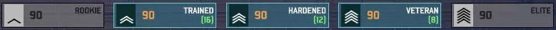 还记得这些按钮吗?用它们可以将不同熟练度等级的单位添加到你的卡组中。双击列表中的单位,会以最低熟练度等级将其添加。不过,你总不会在战斗中只依赖低熟练度的部队吧……对吧? 单位的可用数量有两个相关因素——每张卡片的可用数量,以及可用卡片的数量。让我们来看一下在卡组中添加一张卡片后,瑞典103B的单位卡片情况: