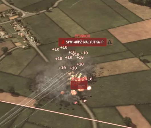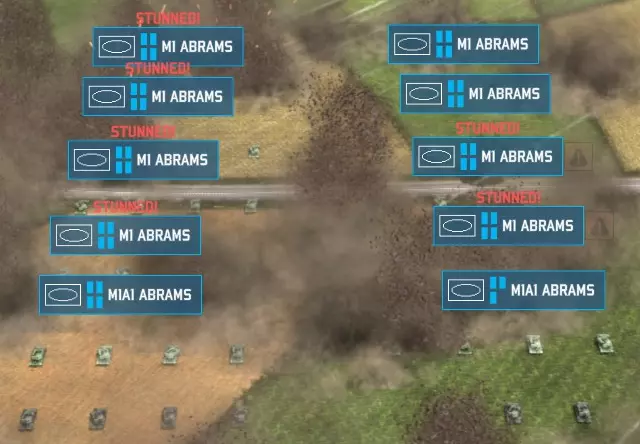 看到那些艾布拉姆斯坦克上方显示的【眩晕!】了吗?这其实是 Eugen 尚未修复的翻译错误。它真正应该显示的是【快杀了我!我现在毫无还手之力!】你知道接下来会发生什么吗?