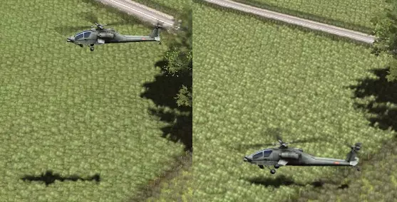 在高空时,直升机更容易被发现和攻击,但能够越过掩体进行观察和射击。在低空时,直升机可以免受反击火力的威胁,但可能会被炮火和爆炸物击中。当直升机着陆时,会像地面单位一样成为坦克和其他地面部队的攻击目标。可通过【高级指令面板】来控制飞行高度。
