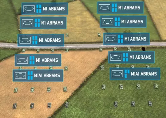 注意到了吗?正面装甲数值高达17,相当出色,但尾部装甲却骤降至5。尾部装甲几乎总是比正面装甲薄弱。有时你需要让单位撤离敌军,但如果仅使用基础移动命令让它们后撤,单位会转身,将脆弱的尾部装甲暴露给敌人。【倒车移动】能让单位在保持最重装甲朝向敌人的同时后撤。你的坦克正面装甲通常应始终朝向敌人最强大的武器。【倒车移动】正是实现这一点的关键。此外,【倒车移动】对于动态防御机动也绝对至关重要(稍后会详细说明)。 最后一种移动命令名为【攻击移动】。攻击移动命令会让你的单位像基本移动一样前往指定位置,但在移动过程中遇到任何目标时会停下并进行攻击。这是派遣部队发起进攻的关键操作。除非单位配备了【卓越级】稳定器,否则移动中的单位会受到明显的精度惩罚,这在面对处于预设防御阵地的静止敌人时是个问题。攻击移动能让单位在移动时停下攻击(从而不受精度惩罚),之后再自行继续移动。 有时你需要单位优先从A点到达B点,其次才考虑敌人。攻击移动可能导致单位在预设的杀戮区域中途停下,这显然是不利的。在指挥进攻或防御时,你必须根据具体战术需求交替使用基础移动、反向移动或攻击移动。攻击移动与烟雾部署配合使用时也相当强大——它基本上是一个自动系统,能让你的单位直接冲到敌人面前,然后停下来在近距离与他们交战。协同使用烟雾部署和攻击移动会成为非常强大的战术手段。 如果使用了错误的移动指令类型,你的单位将会变得极其低效。这不仅仅是一个需要养成的好习惯,在正确的时机使用正确的指令对于战术机动性而言至关重要。 基础要素:士气与 veterancy 《战争游戏:空地一体战》还考虑了另一个因素,那就是士气。单位士气单独计算,当单位受到火力攻击、被敌方火力近失弹波及、暴露在火焰中、受到损伤或目睹友军单位被摧毁时,士气会下降。 士气状态从高到低依次为:冷静、担忧、动摇、恐慌、溃败。随着士气下降,单位作战效能会降低,射速减缓且命中率大幅下降。这意味着低士气单位的战斗效率更低,不仅射击次数减少,且击中目标的可能性也更低,这对导弹制导单位的影响尤为严重。此外,如果一个单位的士气过低,它将会溃败——这意味着该单位会停止响应你的命令,并自行向随机方向逃窜,通常随后就会像个懦夫一样被消灭。 单位还拥有 veterancy 等级。veterancy 等级从新兵、受训、老练、老兵到精英不等。veterancy 等级会单独记录,并通过与敌方单位接触、参与战斗、遭受火力打击或其他情况来被动提升。需要注意的是,veterancy 并非魔法。它不会神奇地让坦克承受更猛烈的冲击或发射更大口径的炮弹。但它确实会影响乘员操作的各个方面。老兵单位射击更精准,在压力下也能保持冷静。非常重要的一点是,经验更丰富的单位在战斗中会拥有更高的士气。它们瞄准更快,接战目标更快。老练单位会根据以下表格获得精准度加成: 新手 x1(无变化) 训练有素 x1.10 身经百战 1.26 老练 1.36 精英 1.60 这意味着精英单位的精准度会获得60%的加成。这使得原本精准度为10(相当一般)的单位提升至16(非常优秀)。哦,而且此精准度加成是在其更高士气(士气更高意味着精准度惩罚更低)的基础上叠加的,因此可以视为双重精准度加成。我们来看看之前提到的这支坦克部队。暂时先抛开我们对单位平衡的认知,假设拥有如此数量的艾布拉姆斯坦克是合理的。