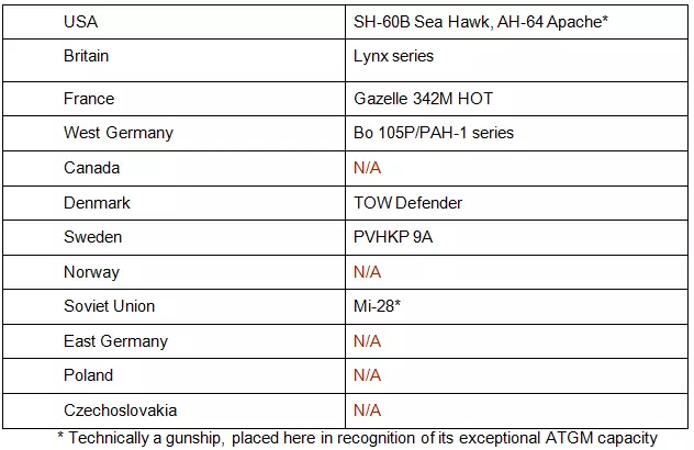 直升机静止时可以灵活转向,但在移动中会有转弯半径。这虽然符合现实,但操作起来可能有点麻烦。当视角拉远时,很难看出直升机存在这个问题,这也是人们经常抱怨直升机“响应指令迟缓”的原因。在机动作战中,这是一个弱点,需要格外注意! 最后,关于直升机的武器有几点说明。直升机共有六种武器类型: 火箭巢,对无装甲目标造成良好伤害,更重要的是能震慑集群装甲部队,可让坦克冲锋戛然而止。 反坦克导弹。我们都知道反坦克导弹是什么,但当它与直升机的高机动性结合时,就显得尤为突出。这其中包括地狱火导弹,它与其他所有反坦克导弹不同,属于发射后不管类型。这对微操作有很大影响——为了不浪费导弹,务必在发射后立即禁用武器,然后重新启用并选择新目标,否则携带地狱火导弹的载具会在第一枚导弹发射后紧接着发射第二枚,造成浪费。 空对空导弹。空中防空平台有几个优势,这将在后面讨论。 机枪,装备于轻型直升机。 自动榴弹发射器,简称AGL。仅UC-1C重型野猪直升机配备,非常适合对几乎所有目标造成压制效果。 机炮,在直升机上表现出色。为什么?因为它们带有【动能】标签,并且能够攻击顶部装甲!虽然直升机上的机炮需要相当靠近才能摧毁坦克,但它们摧毁坦克的效率却出奇地高。 要注意,直升机并非单纯的进攻武器——凭借其机动性、火力以及对装甲纵队的压制能力,它们在动态防御中表现出色。由于直升机能够快速抵达战场,可将其作为增援部队召唤。 单位:直升机 桑迪的选择:SH-60B 海鹰、AH-64 阿帕奇、米-28、山猫 AH.7 反坦克导弹载机是我们的第一种直升机类型。这类直升机专门负责抵近目标、发射反坦克导弹,然后在敌人做出反应前迅速撤离。由于它们中的大多数价格相当低廉,却搭载着中等到优秀的反坦克武器,因此性价比非常高。值得注意的是,部分远程导弹的射程甚至超过了敌方的反制手段!由于它们较为脆弱,务必让其远离敌方防空火力。这类单位通常在最大射程处使用效果最佳,部署在己方防空掩护范围内,这样敌方战机若想攻击它们,自身也会在此过程中被击落。不过,它们的弹药通常非常有限。