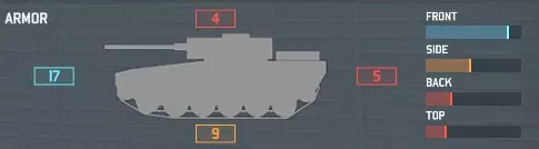 如你所见,每个单位都有四种不同类型的装甲:正面、侧面、背面和顶部。正面装甲通常是最厚重的,而顶部和背面装甲则通常是最薄弱的。装甲值决定了受到攻击时所承受的伤害。我们已经讨论过侧面和背面装甲如何促使机动战的运用,而顶部装甲会受到火炮的直接命中、炸弹的攻击,可能还会受到直升机机炮的攻击(据我所知,这一点似乎尚未得到官方的确认或否认)。 单位信息卡的底部会显示其他各类重要信息。其中一些属性的等级范围为:无、差、较差、普通/中等、良好、非常好、卓越。
