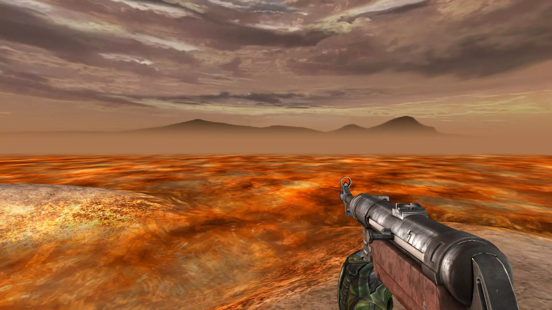 发布时间:2022年 主武器:.600口径子弹 副武器:火焰喷射器 描述:“未来的手炮。”这是Enravion公司在公开推出这款AM67改装版时所说的话。因其强大的.600口径爆炸穿甲弹,该武器被昵称为“重击者”;AH104完全配得上“手炮”这一称号。其巨大的制止力和反装甲能力使其成为全球军事领导人和人员的最爱。全钢材质的AH104以异常沉重(空枪12磅)而闻名,这是为了抵消其大口径子弹的威力,且无法双持。它还配备了激光瞄准系统,取代了AM67通常配备的闪光灯。 FMP-2012冲锋手枪