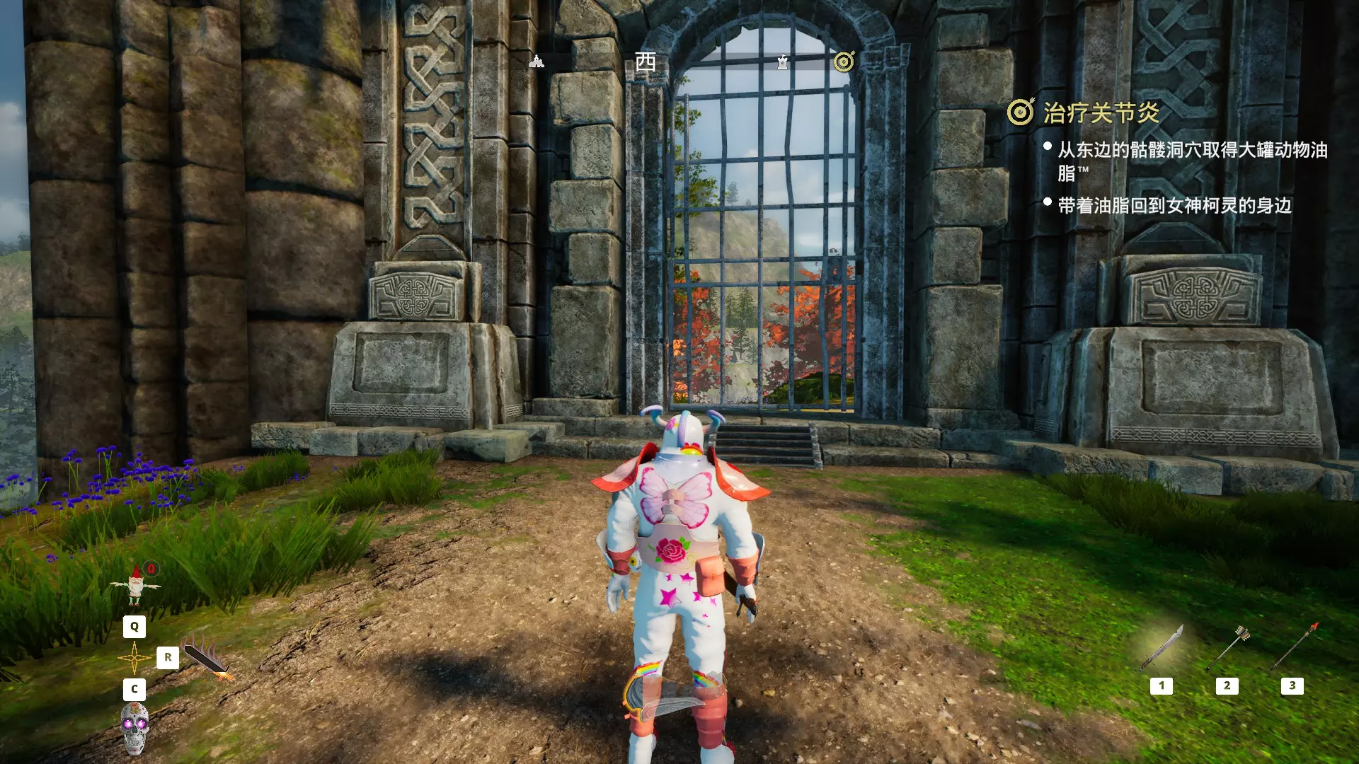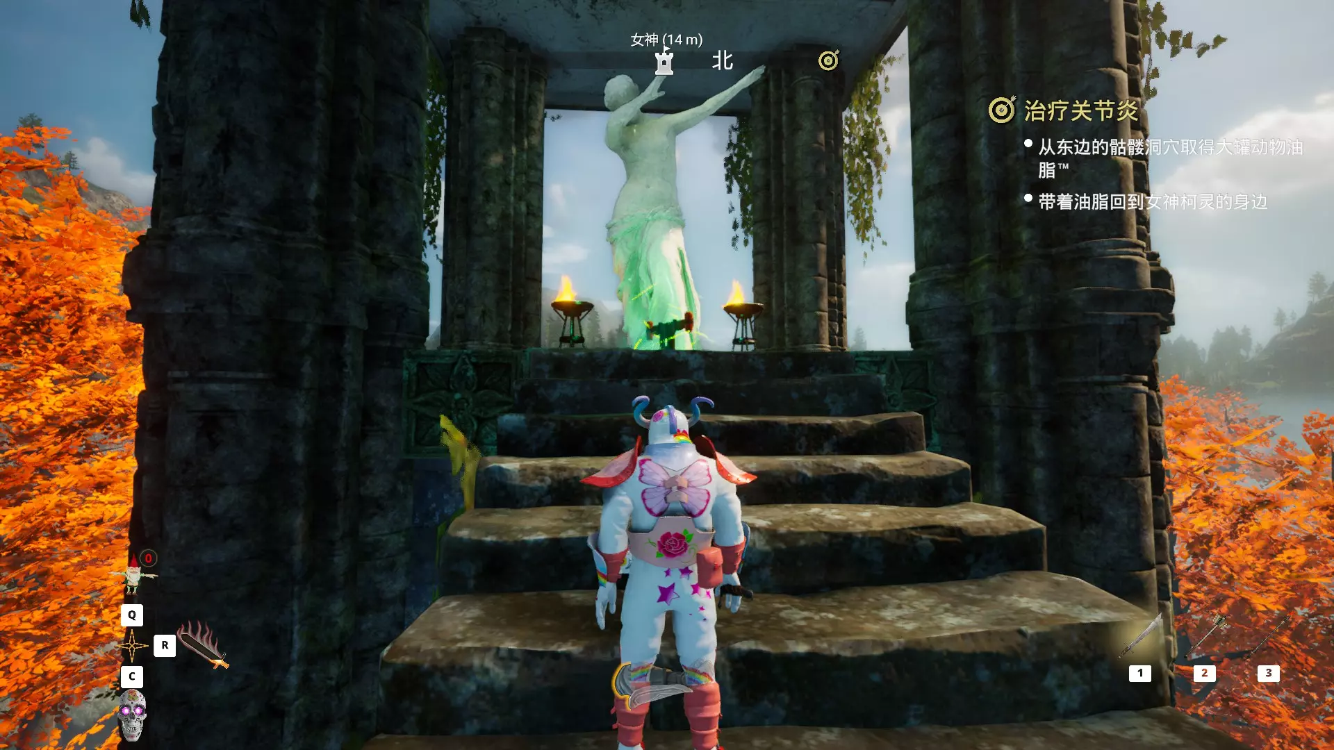 操作流程 提前获取喷气背包的操作方法:来到女神的雕像处,这里能看到在没有完成女神的任务时,大门是紧紧关闭的,从正面我们无法通过,所以可以从侧面绕过去,这样就能轻松获得喷气背包,省去了女神交代的麻烦任务。