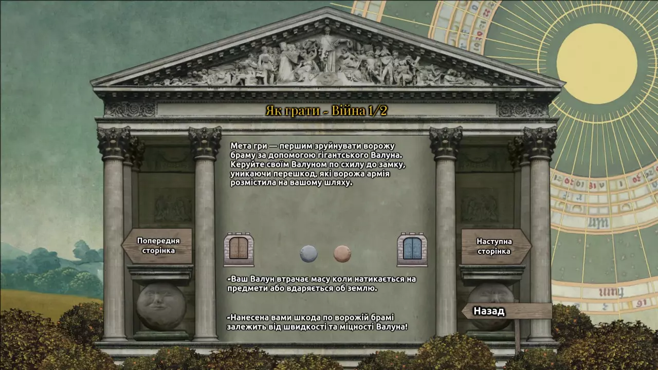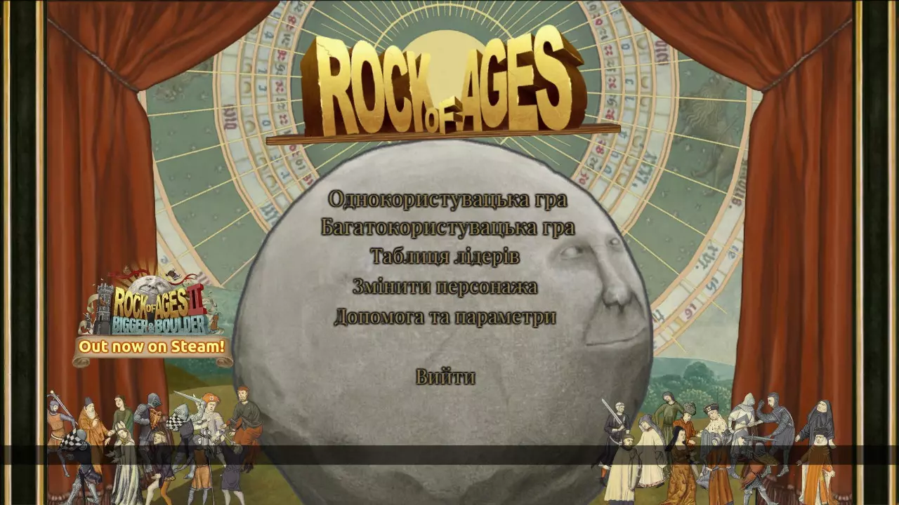 大家好!我们的“桥上的鼓”双人组为大家带来《摇滚巨蛋》的乌克兰语本地化补丁。这是一款充满欢乐的游戏,它将以幽默和讽刺的方式带您认识历史(及其他)人物。遗憾的是,该游戏没有乌克兰语本地化,所以我们决定解决这个问题。 本地化补丁特点: 1. 游戏文本100%翻译。 2. 翻译基于英语并替换英语。 3. 不影响游戏成就。游戏文本中的笑话、引用及其他特色内容均已进行适配(所有可适配内容)。 安装说明 1. 下载压缩包 2. 解压压缩包并将文件复制到游戏所需文件夹 将“BoulderGame-CookedPC”文件夹中的“Startup.upk”文件复制并替换到游戏文件夹(路径:SteamLibrary\steamapps\common\Rock of Ages\BoulderGame\CookedPC)1. 将“BoulderGame-Localization”文件夹中的“Cinematics”“GFxUI”和“Tutorials”文件复制并替换到游戏目录(路径为SteamLibrary\steamapps\common\Rock of Ages\BoulderGame\Localization\INT)。 2. 将“Engine-Localization”文件夹中的“Engine”和“OnlineSubsystemGameSpy”文件复制并替换到游戏目录(路径为SteamLibrary\steamapps\common\Rock of Ages\Engine\Localization\INT)。 3. 尽情享受游戏吧!翻译展示