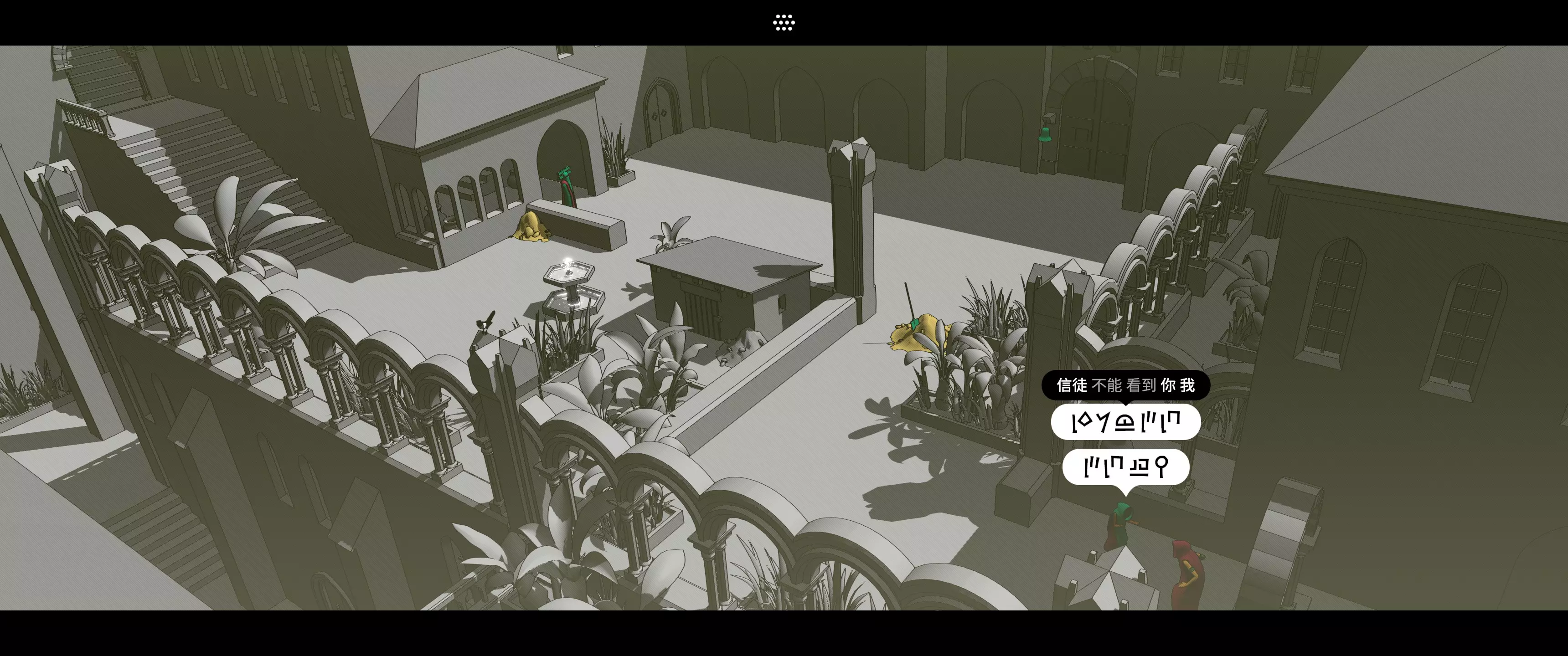 “如何获得信息”,而不是“获得信息” 《巴别塔圣歌》本质上是一款解谜冒险游戏,除了语言解谜外,还包含一些图形、数学、场景观察以及潜行要素。 其实我个人通常不太喜欢解谜和潜行类游戏,尤其是在我发现自己玩过的解谜游戏中,除了《传送门》系列外几乎找不到特别喜欢的,但《巴别塔圣歌》确实是个例外。游戏中关于语言的解谜玩法非常独特且有趣,与《传送门》等解谜游戏让你逐步学会世界运作规则不同,《巴别塔圣歌》是让你逐步学会如何获得信息本身。 注意,是“如何获得信息”,而不是“获得信息”。
