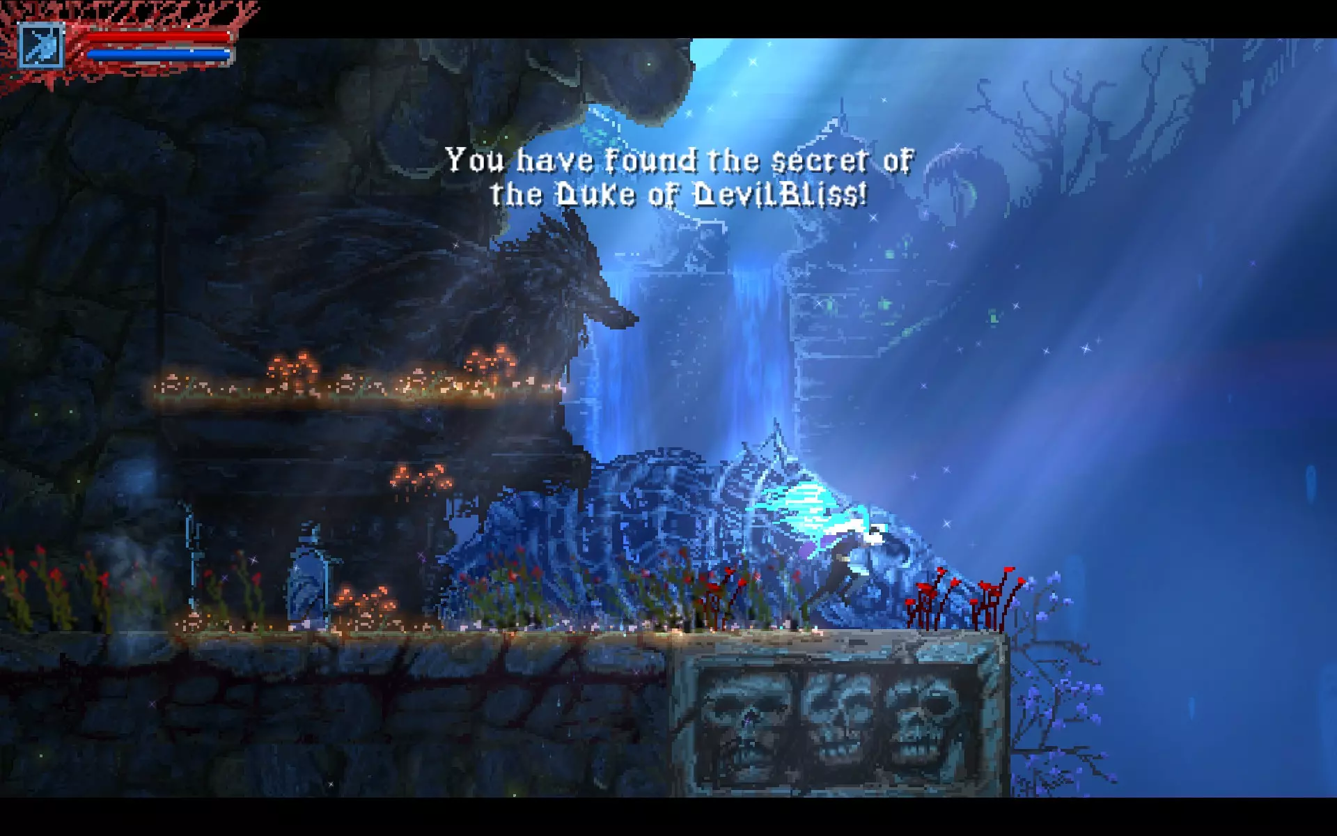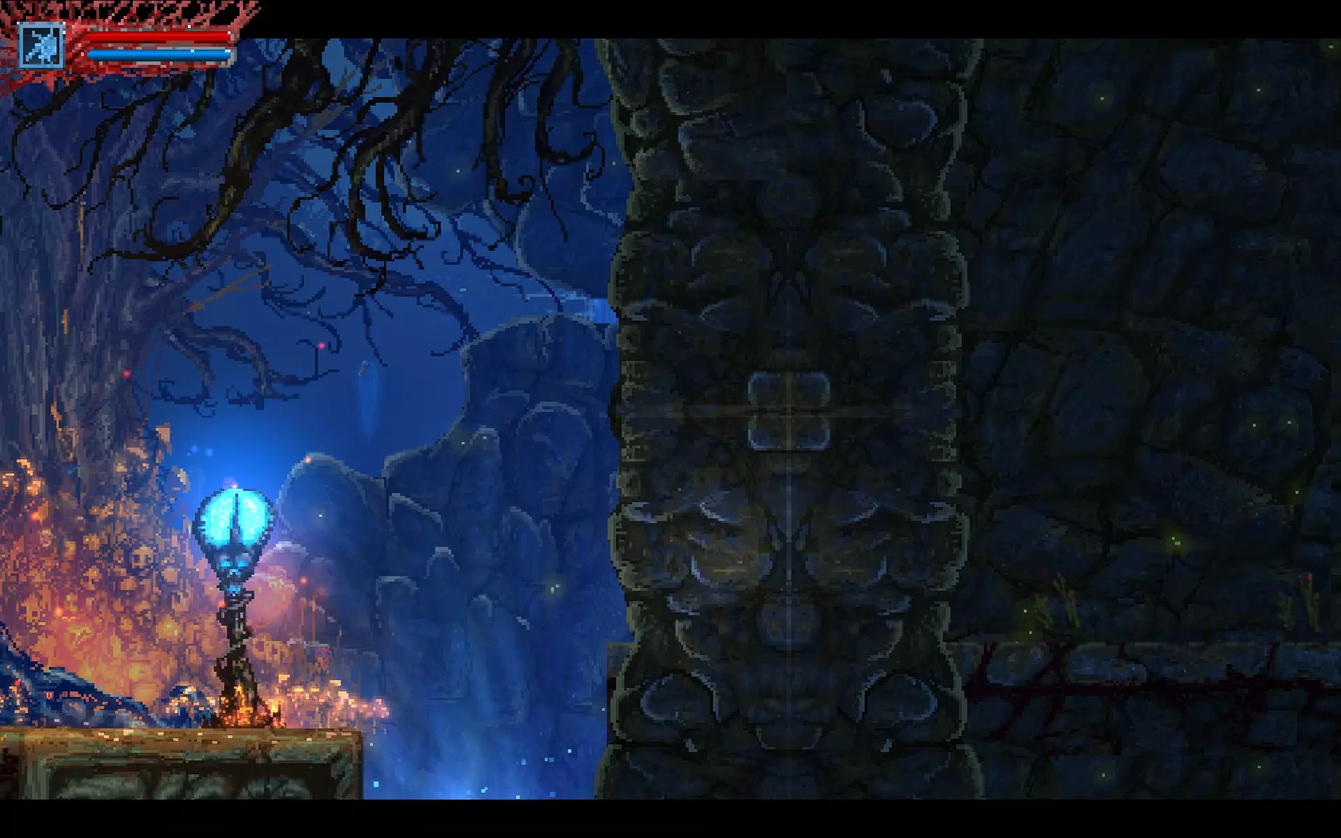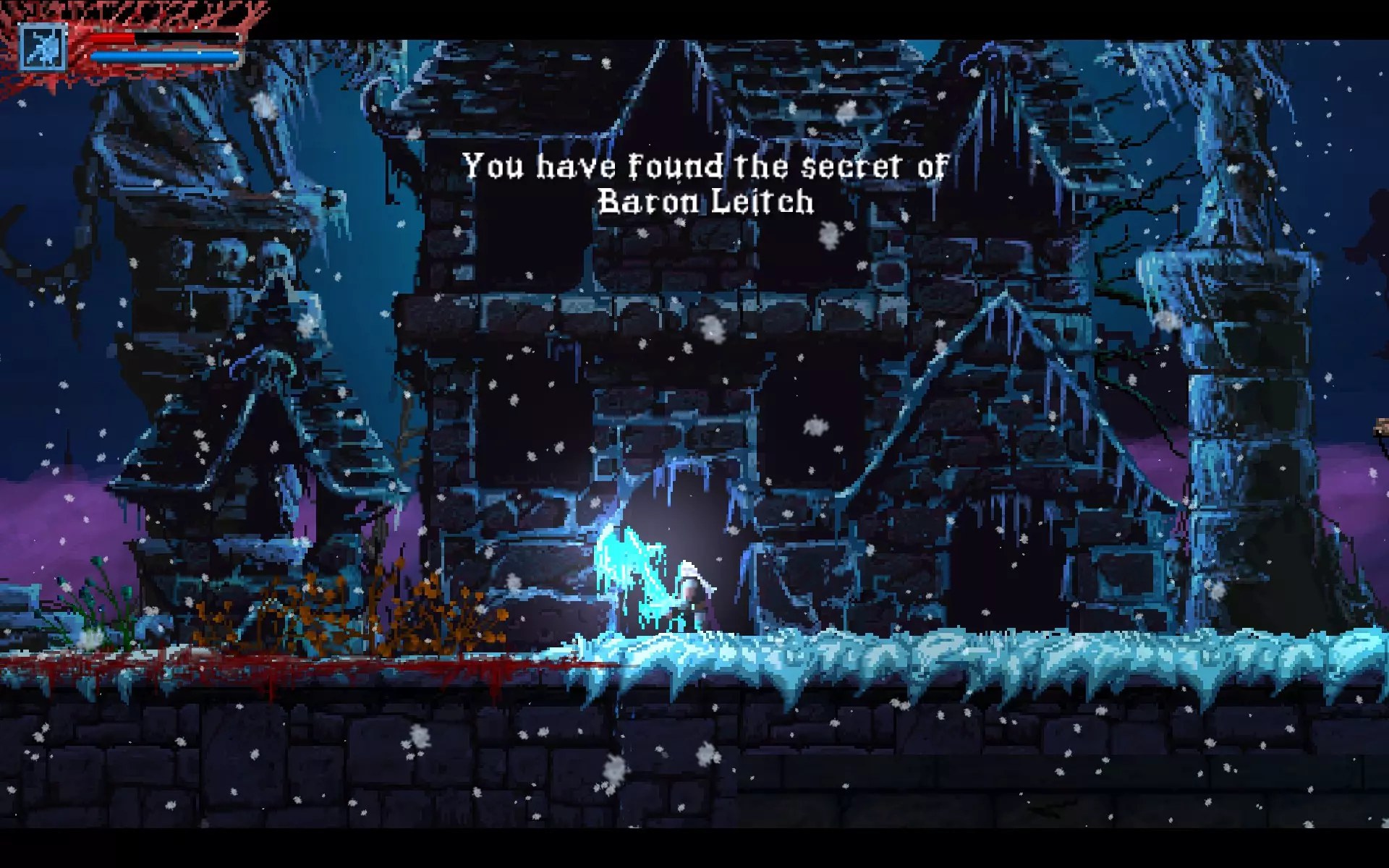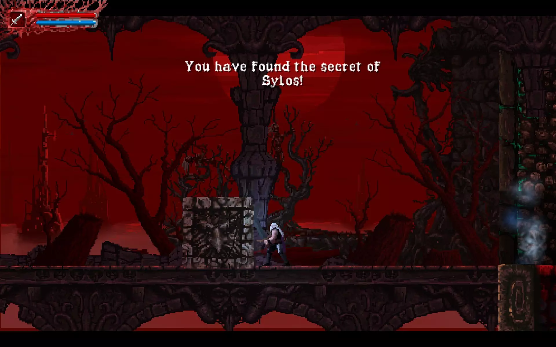 你需要将这个方块向左推。 守卫——两只眼魔。 战斗结束并拿到护身符的最后一块碎片后,你可以移动关卡右侧的方块。这对与两只血狼的战斗有很大帮助。 就这样。你会获得成就,之后与弗罗尔的战斗也会轻松很多。