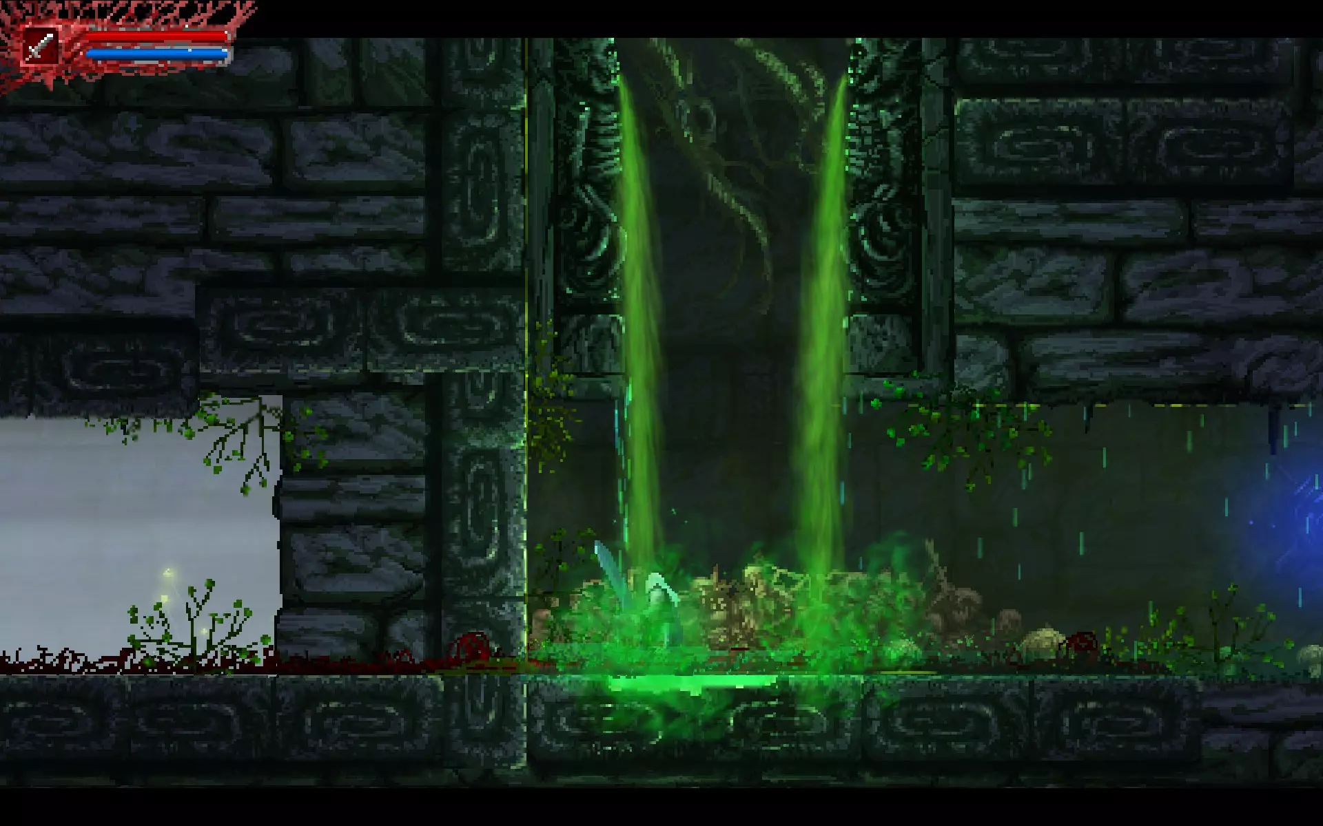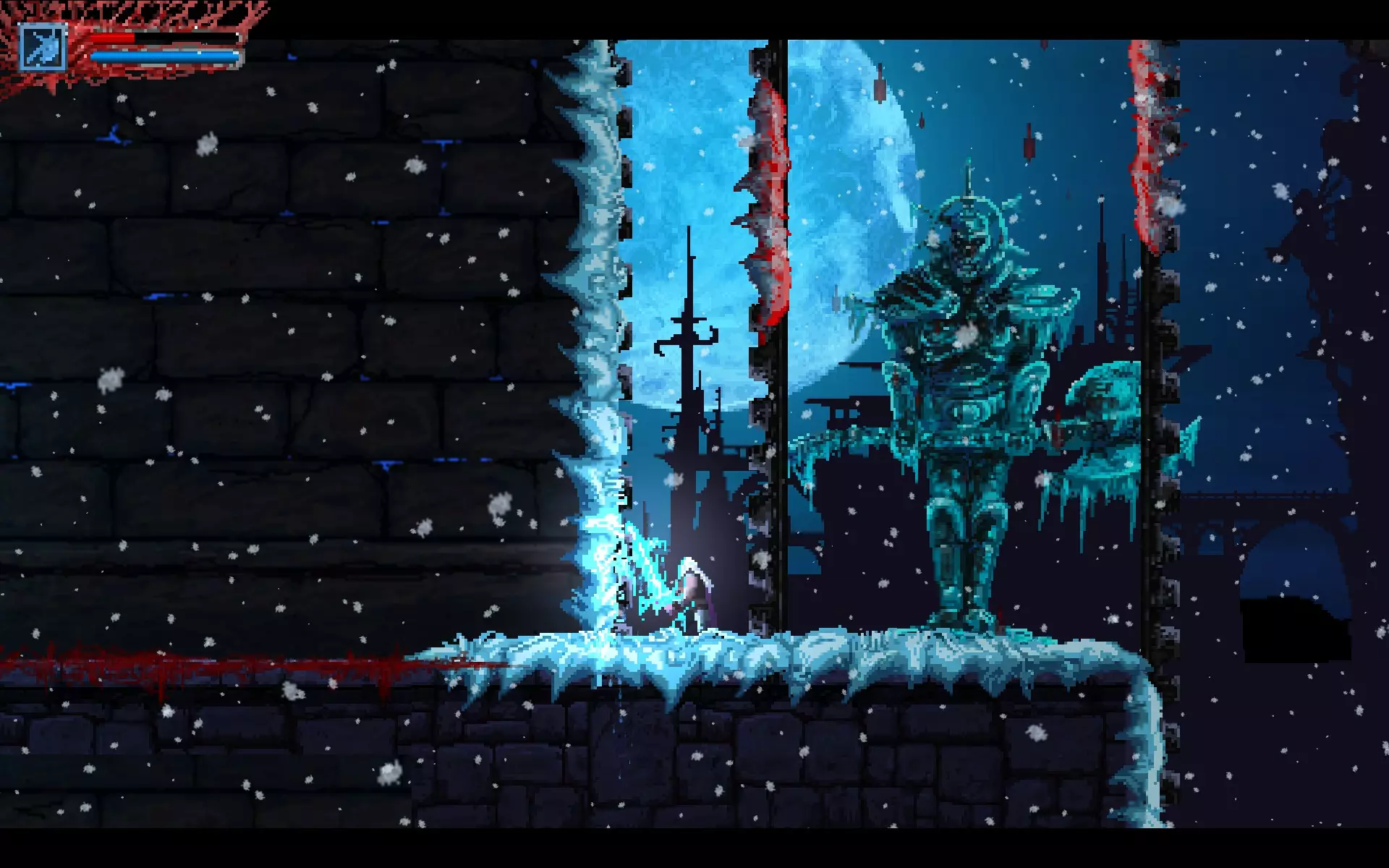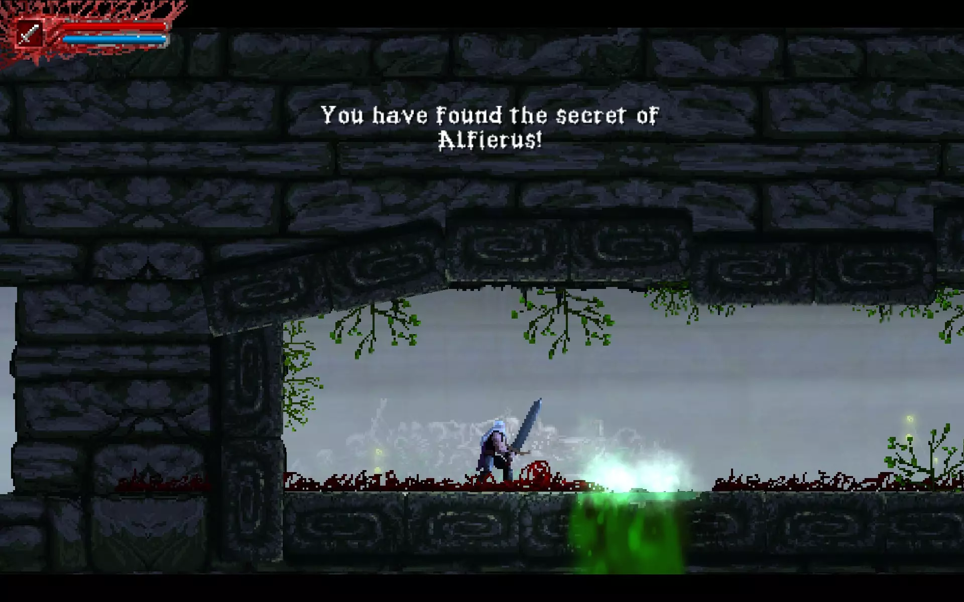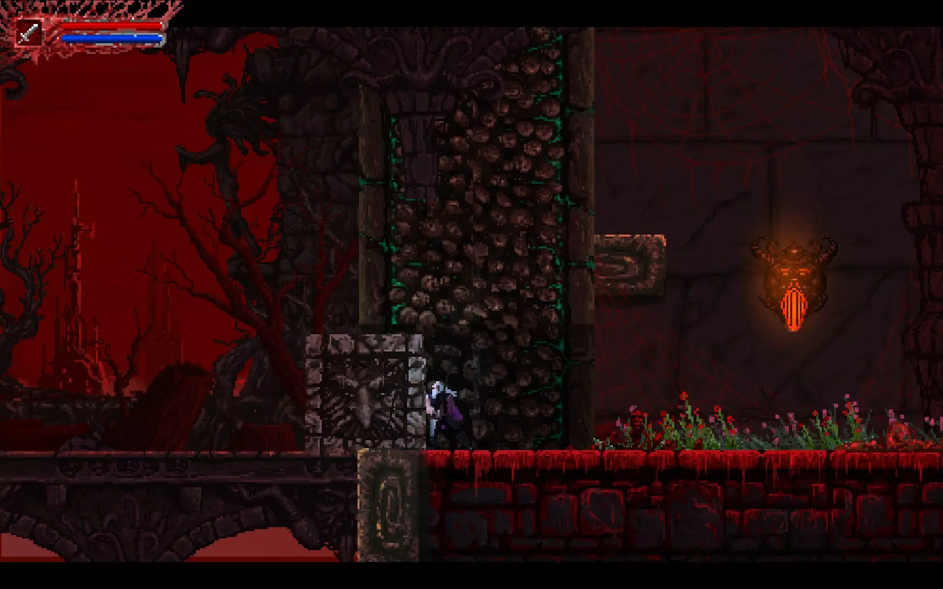你需要将这个方块向左推。 守卫——两只眼魔。 战斗结束并拿到护身符的最后一块碎片后,你可以移动关卡右侧的方块。这对与两只血狼的战斗有很大帮助。 就这样。你会获得成就,之后与弗罗尔的战斗也会轻松很多。