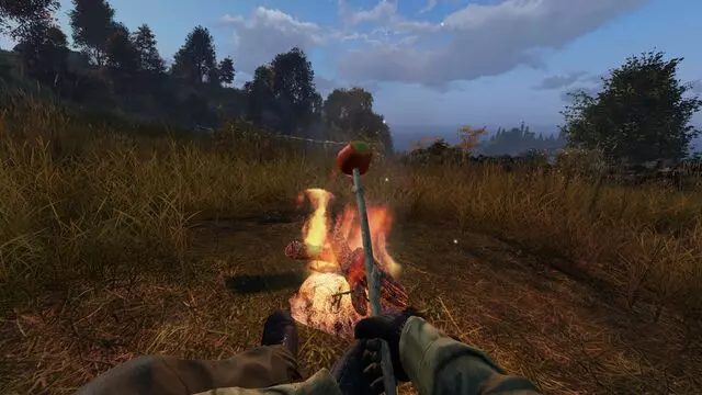 你可以烘烤、烹饪甚至风干食物,具体选择哪种方式取决于你现有的资源以及每种烹饪方式的营养选择。 使用大木棍烹饪 这是最简单的食物制备方法,但耗时最长,最终会得到烤好的食物。 玩家需要通过劈砍灌木甚至一些树木来获取大木棍。之后需要搭建一个火堆(可以在室内使用壁炉,也可以在室外露天搭建)。 搭建好火堆后,玩家需要将木棍与想要烹饪的食物组合,然后对着火堆执行操作。 玩家在火堆旁烘烤食物时会处于易受攻击的状态。