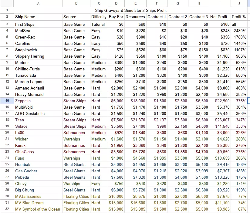 所有船舶的净利润和利润率,以帮助完成【Wall Street Whale】成就。 简介 我制作这个主要是为了自己,但没看到类似的指南,所以决定分享出来。 图表