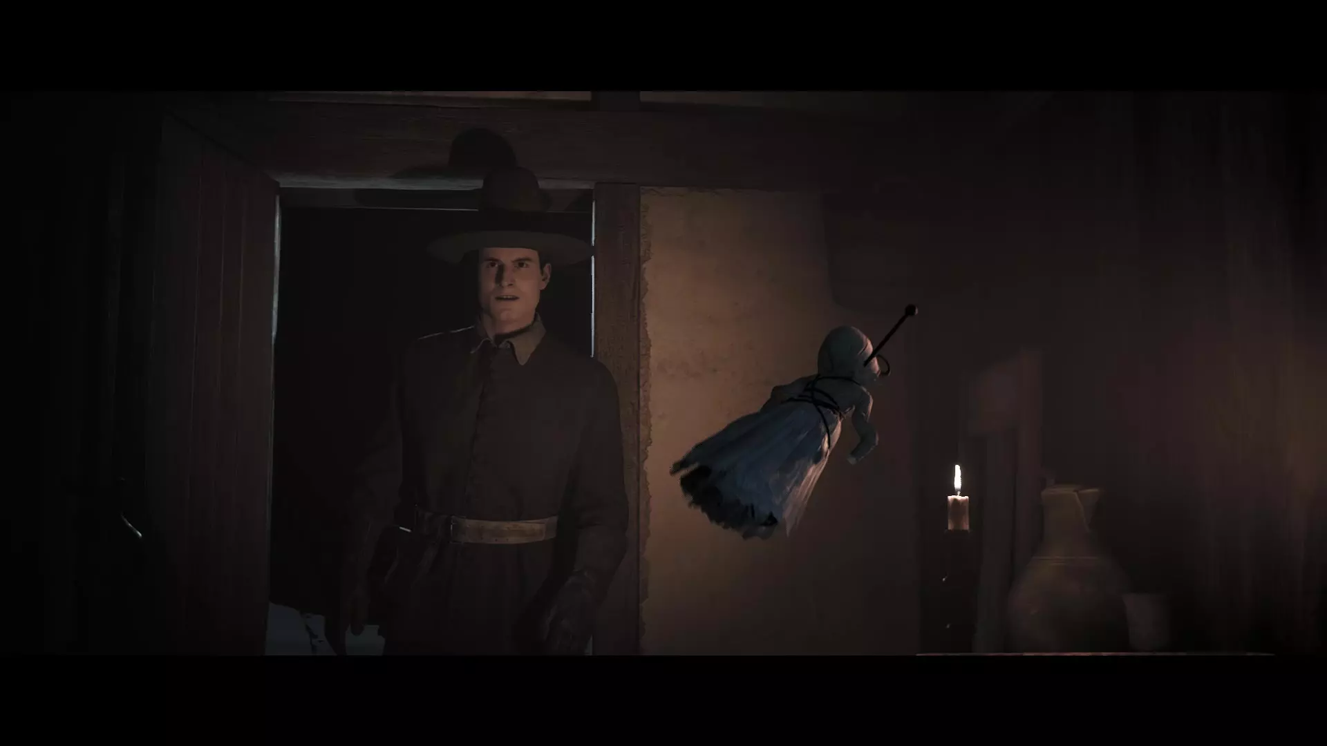 小女孩很高兴找到了自己心爱的玩具,但塔比莎看到这个娃娃的样子后,决定从妹妹那里把它拿走,这样就没人能看到它并指责玛丽也是女巫了。 但已经晚了。约瑟夫已经看到了娃娃。于是他立刻去找法官,讲述了自己在森林里的所见所闻。而法官在听完他的陈述后,不知为何认定那个玩具是魔鬼娃娃,是塔比莎给小女孩的,目的是通过它用黑魔法控制孩子。因此,法官立即派警长去她们家逮捕姐姐。当警长出现在姐妹俩家门口时,塔比莎真的吓坏了。她试图辩解,并请求告诉玛丽这个娃娃其实是她的,是她亲手制作的,所以这个玩具才显得相当丑陋,而不是因为它是用来与恶魔沟通的。但玛丽,不知是出于恐惧,还是因为姐姐拿走了她心爱的玩具而生她的气,说这个娃娃不属于她。随后,马歇尔自然带走了塔比莎,之后法庭判处她死刑,具体是绞刑还是火刑,则取决于玩家的某个选择。而在塔比莎被处决时,玛丽似乎对因自己而导致的这一切感到后悔,但她却没有采取任何行动来阻止。在我看来,这是因为她的恐惧。她担心如果说出真相,自己会受到指责,甚至可能代替妹妹被公开处决。不过,她保持沉默或许还有另一个原因。一位名叫亚伯拉罕的当地居民在处死塔比莎时,看到玛丽脸上露出了笑容。