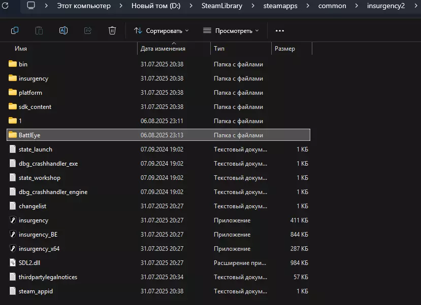 本指南将为你介绍如何在Windows 11系统上运行游戏。 关于本指南的一些说明: 在《叛乱》中使用了BattlEye反作弊程序,但该程序版本过旧,导致游戏无法正常启动——电脑会出现卡顿,并且在打开游戏一段时间后,还会出现蓝屏死机的情况。 Steam上有两篇关于如何解决此问题的指南: 其中一篇指南由shpr0t™用俄语撰写。我研究了这些指南后,认为其中缺乏足够的细节。因此,在获得作者shpr0t™的许可后,我以他的指南为基础,撰写了自己的指南。支持BattlEye反作弊系统的游戏列表。请确保您的电脑已下载以下列表中的任意一款游戏:武装突袭2(2009)、行星边际2(2012)、武装突袭3(2013)、彩虹六号:围攻(2015)、英雄与将军(2016)、逃离塔科夫(2017)、方舟:生存进化(2017)、未转变者(2017)、命运2(2017)、绝地求生(2017)、幽灵行动:荒野(2017)、Atlas(2018)、Z1大逃杀(2018)、DayZ(2018)、行星边际:竞技场(2019)、幽灵行动:断点(2019)、看门狗:军团(2020)、武装突袭:Reforger(2022)、飙酷车神2(2018)、循环:前沿(2022)、骑马与砍杀2:霸主(2022)、汤姆·克兰西:彩虹六号:异种(2022)、Tibia(2023)、War Rock(2023)、方舟:生存飞升(2023)、骷髅与骸骨(2024)、XDefiant(2024)、应征入伍(2024)、Grand Theft Auto在线(2024)战争雷霆(2024)这些游戏中有正常运行的反作弊程序BattlEye,我们需要将其中一个游戏的正常运行软件转移到叛乱:沙漠风暴中。例如,在未转变者(2017)游戏中,很容易找到BattlEye文件夹,因为它在打开安装文件时就会出现。