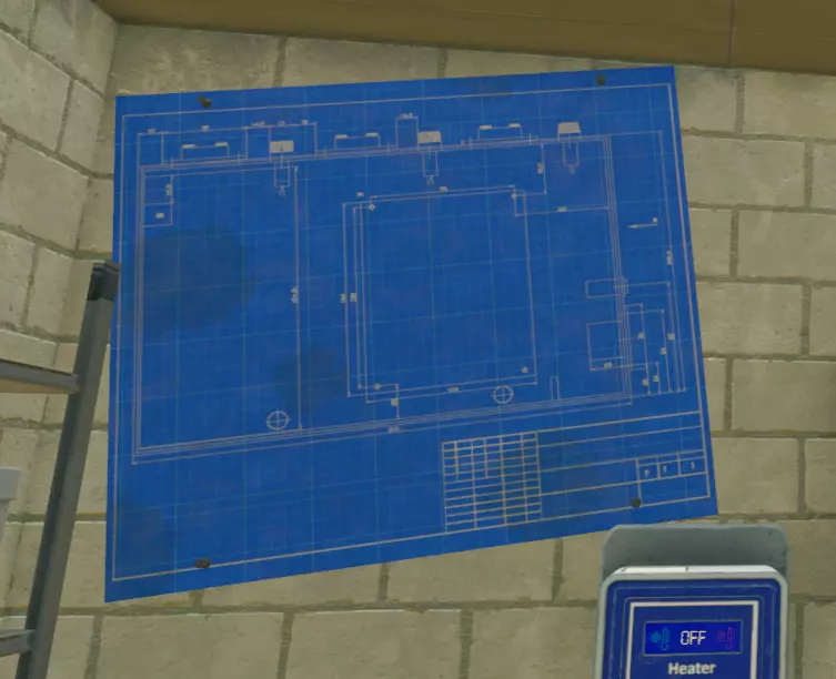 在棚屋的架子和墙壁之间找到。蓝图五