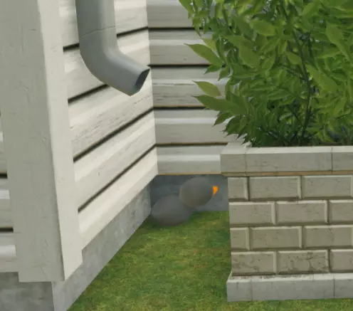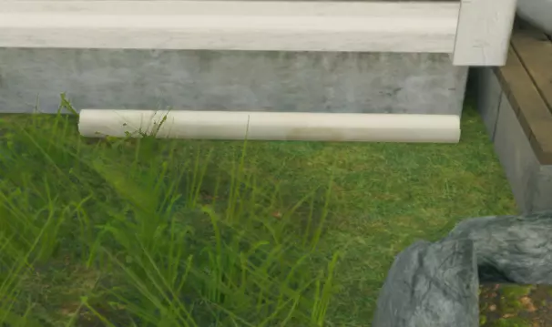 在露台旁的落水管排水口下方找到。蓝图四
