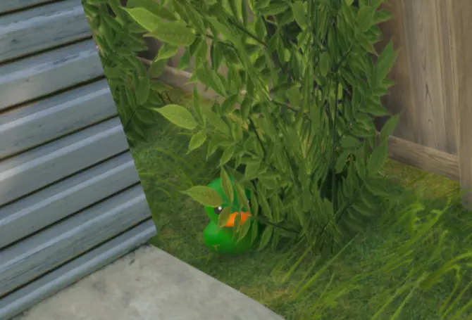 在房屋和树旁的种植箱之间发现卡住了。鸭子六号