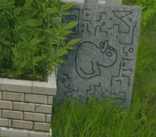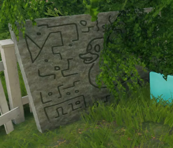 在院子角落的伞后面找到。 石碑七