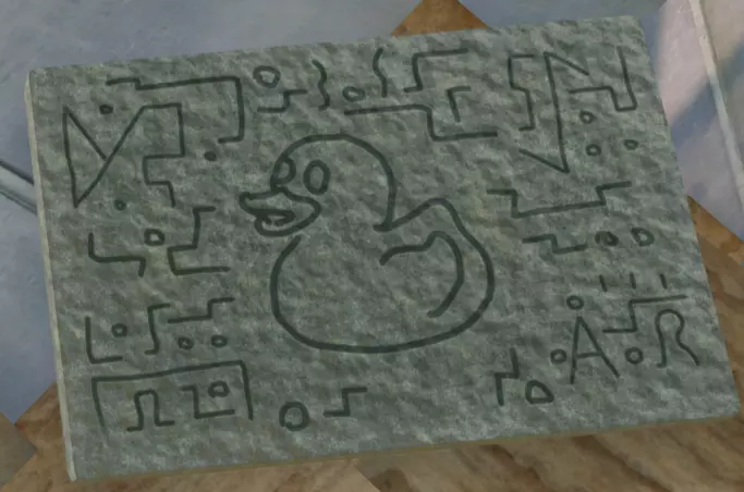 在大鸭子内部发现。 石碑五