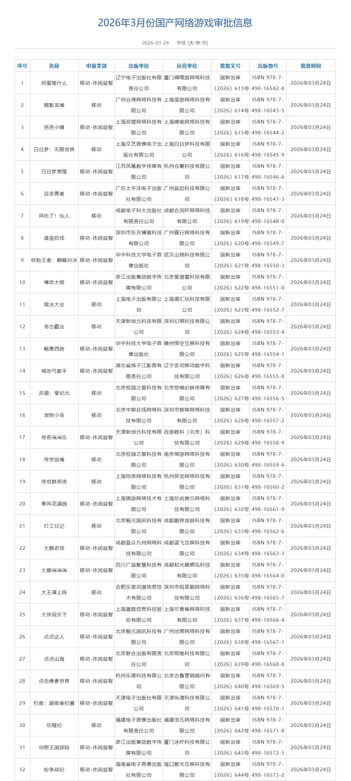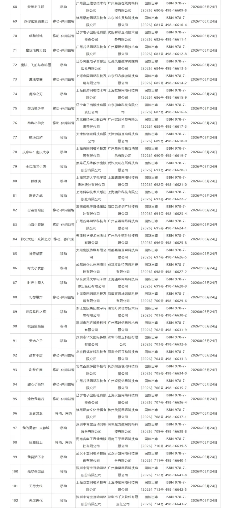 3月国产+进口游戏版号已正式发布!