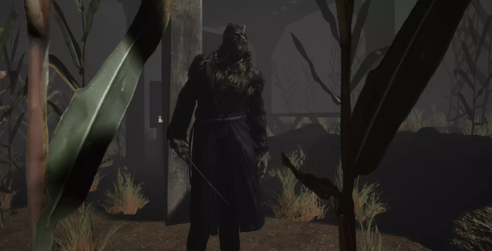 玉米地:怪物 在玉米地中,你肯定会遇到南瓜头,他是一个挥舞着镰刀的疯子。如果你在玉米地里,他就会知道你的位置。不过,有几个地方他不敢进入,而且他的耐力也不多,所以虽然他能跑得很快,但跑不了多久,恢复体力也需要同样长的时间,你应该明智地利用这段时间。