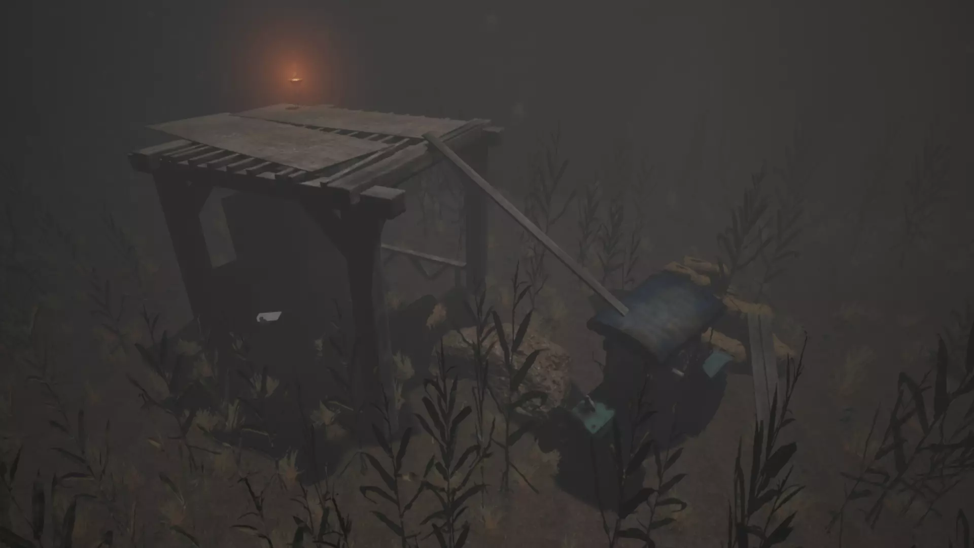 玉米地机制解析指南 玉米地:棚屋 在玉米地内部,靠近谷仓的位置你会发现一个棚屋。这个棚屋里可能有一些有用的物品,并且是个非常好的藏身之处。我觉得周围散落的工具会让任何东西都不敢跟进来。