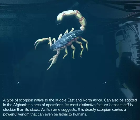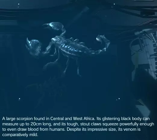 黄尾蝎被认为是最危险的蝎子种类。在阿富汗各地都很常见,前往沙漠地区遇到的几率更高。 稀有度:常见 位置:阿富汗 捕获方法:陷阱 帝王蝎