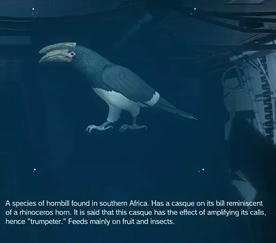 因此得名。十分常见。在非洲和阿富汗均有分布。可通过观察飞行或设置动物陷阱发现。 稀有度:常见 位置:阿富汗/非洲 获取方式:麻醉捕获/陷阱 【噪犀鸟】