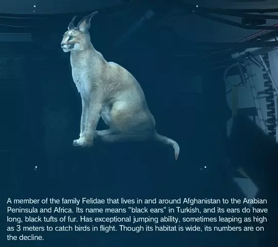 在所示区域放置陷阱以捕捉这些野猫。 稀有度:超稀有 地点:阿富汗 方法:陷阱