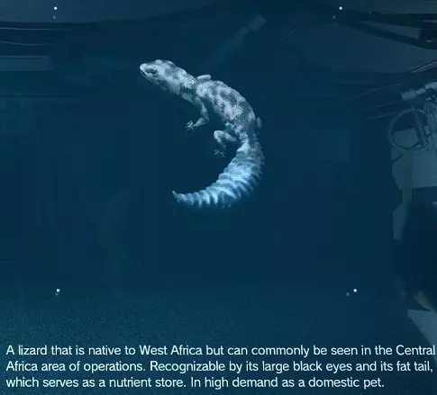 说实话,如果你从游戏发售起就一直在玩,你的【母基地】里应该堆满了这些东西,但如果你连一只都没找到……那只能说这周运气不太好,试试在阿富汗的多岩石区域找找吧。 稀有度:普通 位置:阿富汗 获取方式:陷阱 非洲肥尾守宫