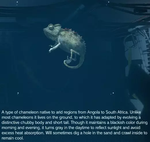 它并不像你想象的那么罕见,可能是稀有度为【不常见】的动物中最容易获得的。提示:在多岩石区域发现。 稀有度:不常见 位置:非洲 获取方式:陷阱 纳米比亚变色龙