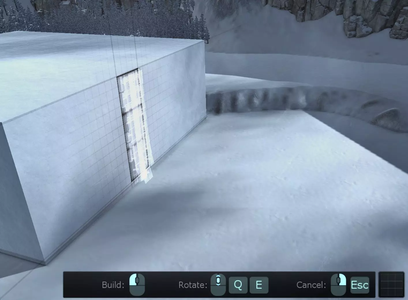 在冰之堡垒的地面放置平台。(似乎只能放在靠近湖泊的最低地面区域。) 注意:虽然看起来可以选择平台然后切换到你的前三个城市中的任意一个,但该平台无法放置在那些区域的地面上。(似乎可以将其放置在你的城市上,但我没有足够大或足够空旷的区域来尝试……所以我不会进行尝试。) 地面平台的用途 建造平台(10个框架、16根横梁、70个箱子)后,你现在可以在冰之堡垒的平台上建造侧壁结构。