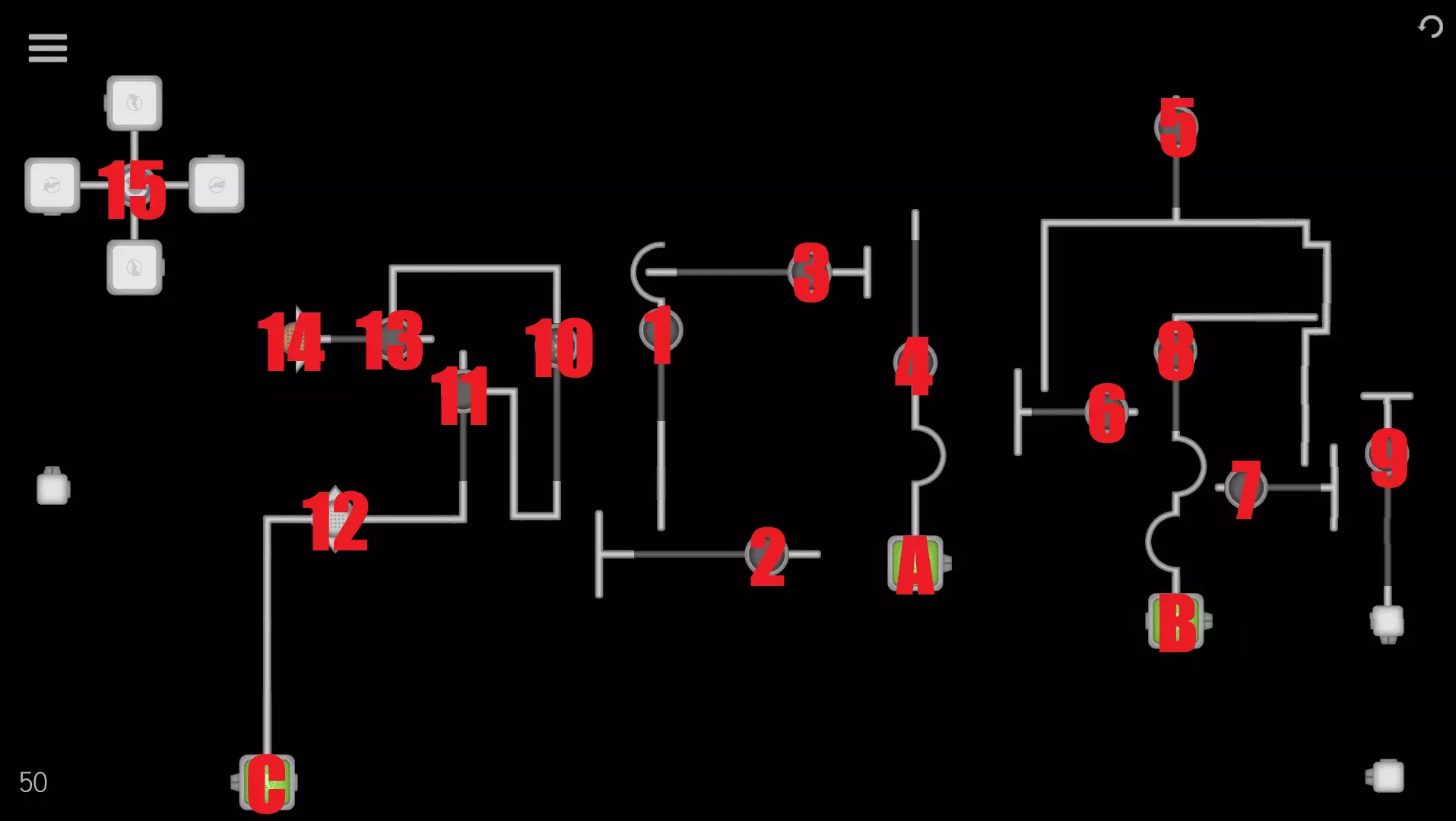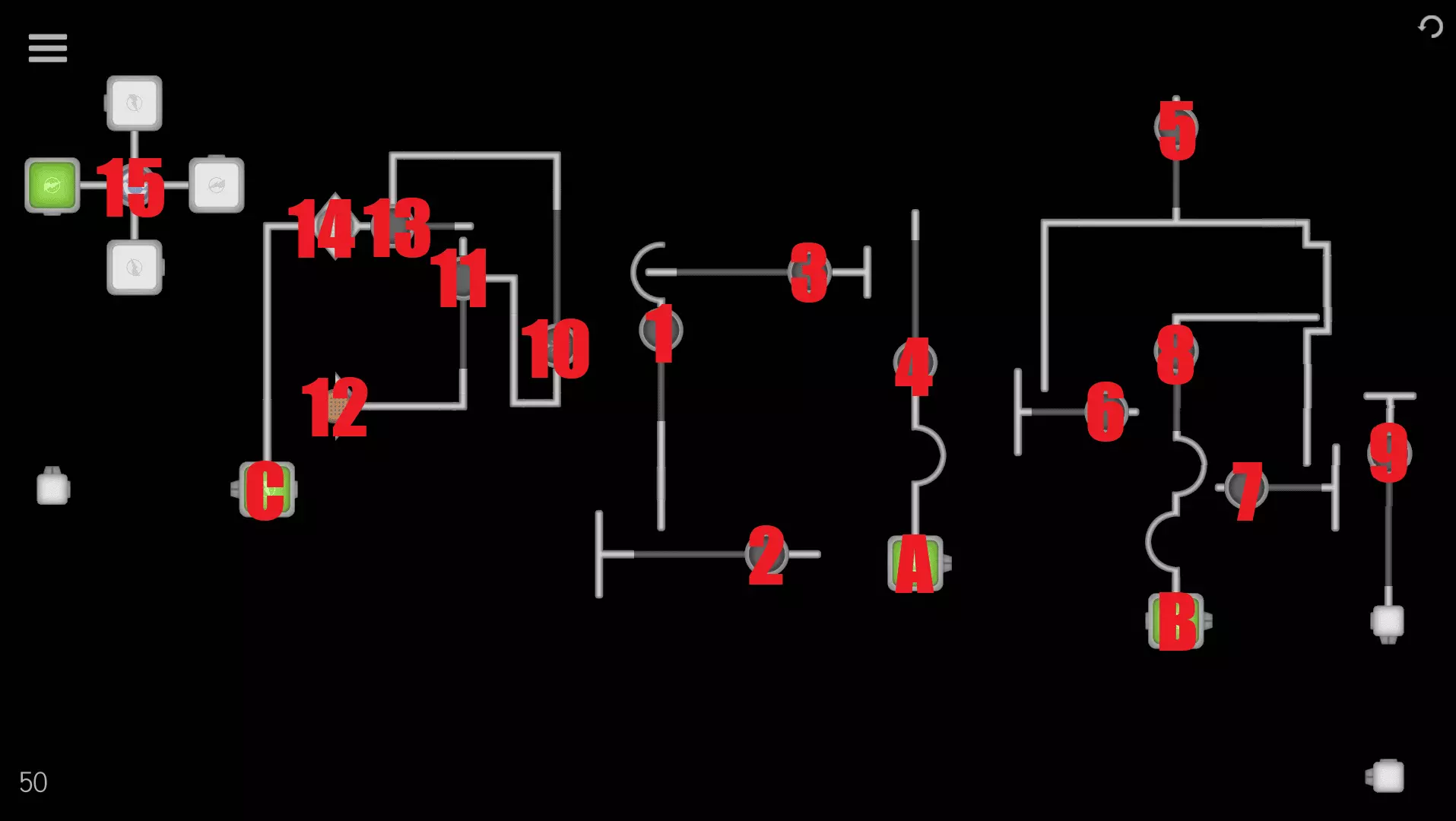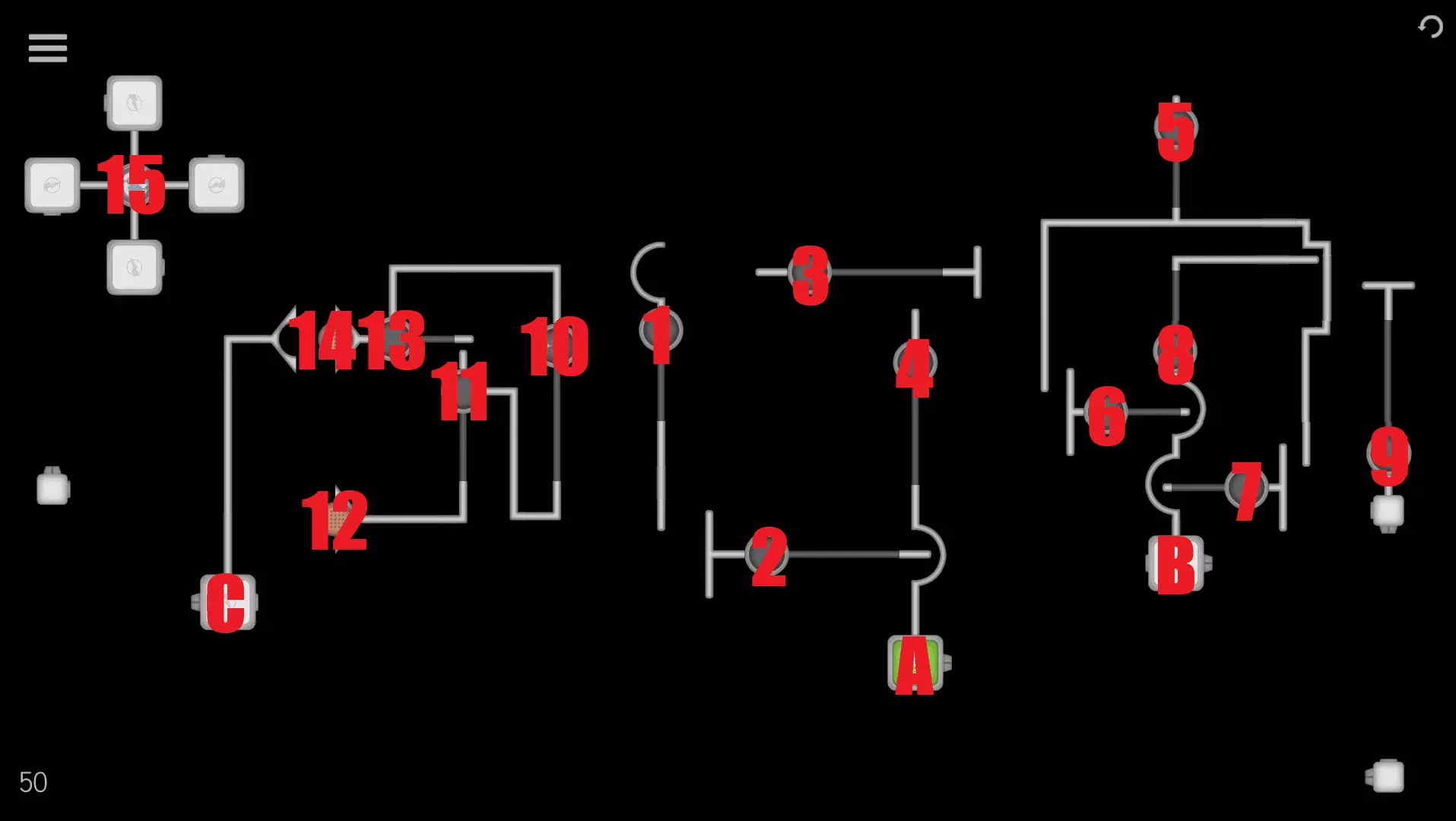 1→2→3→4→5→A→ 6→7→8→9→B→C