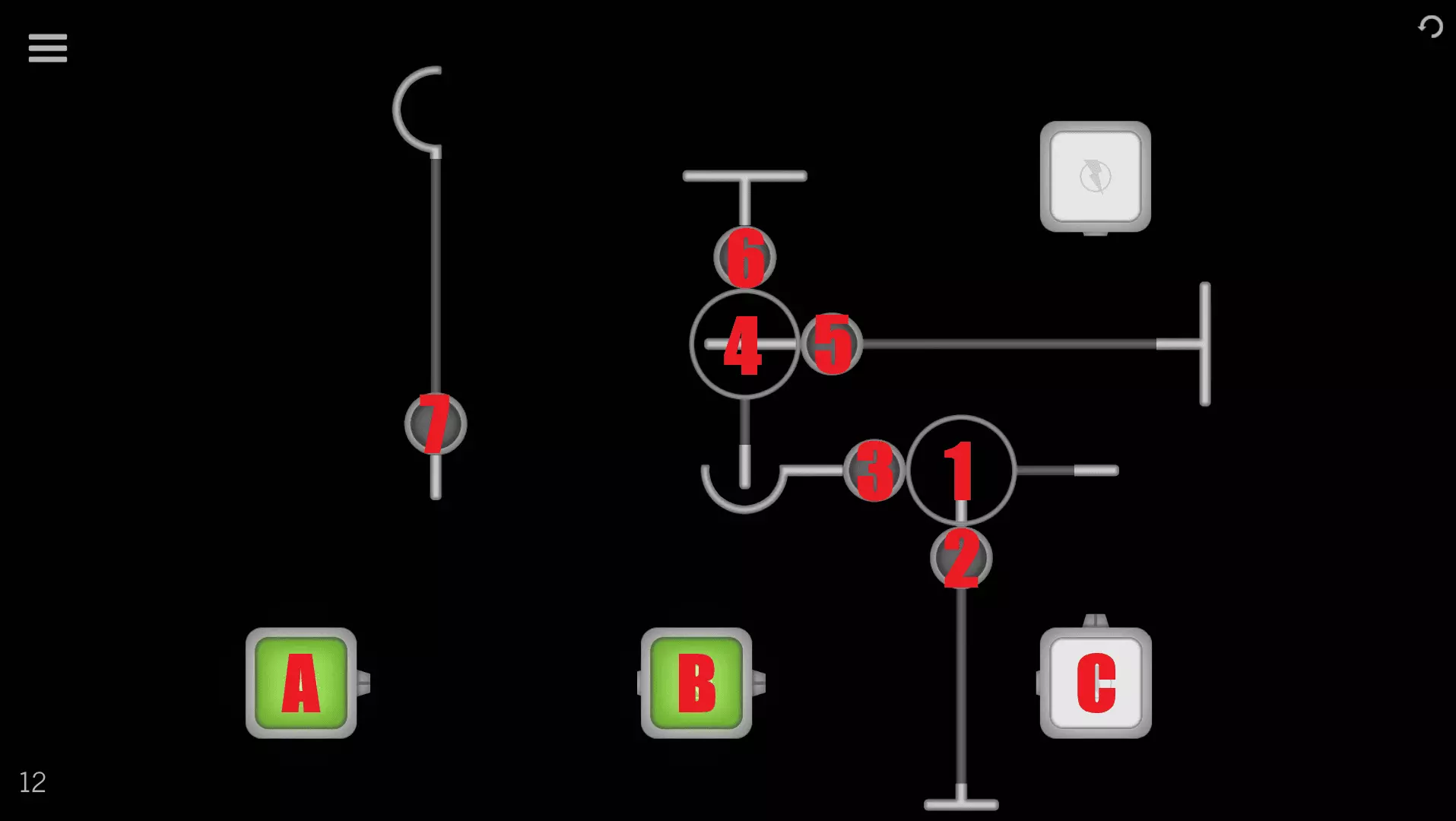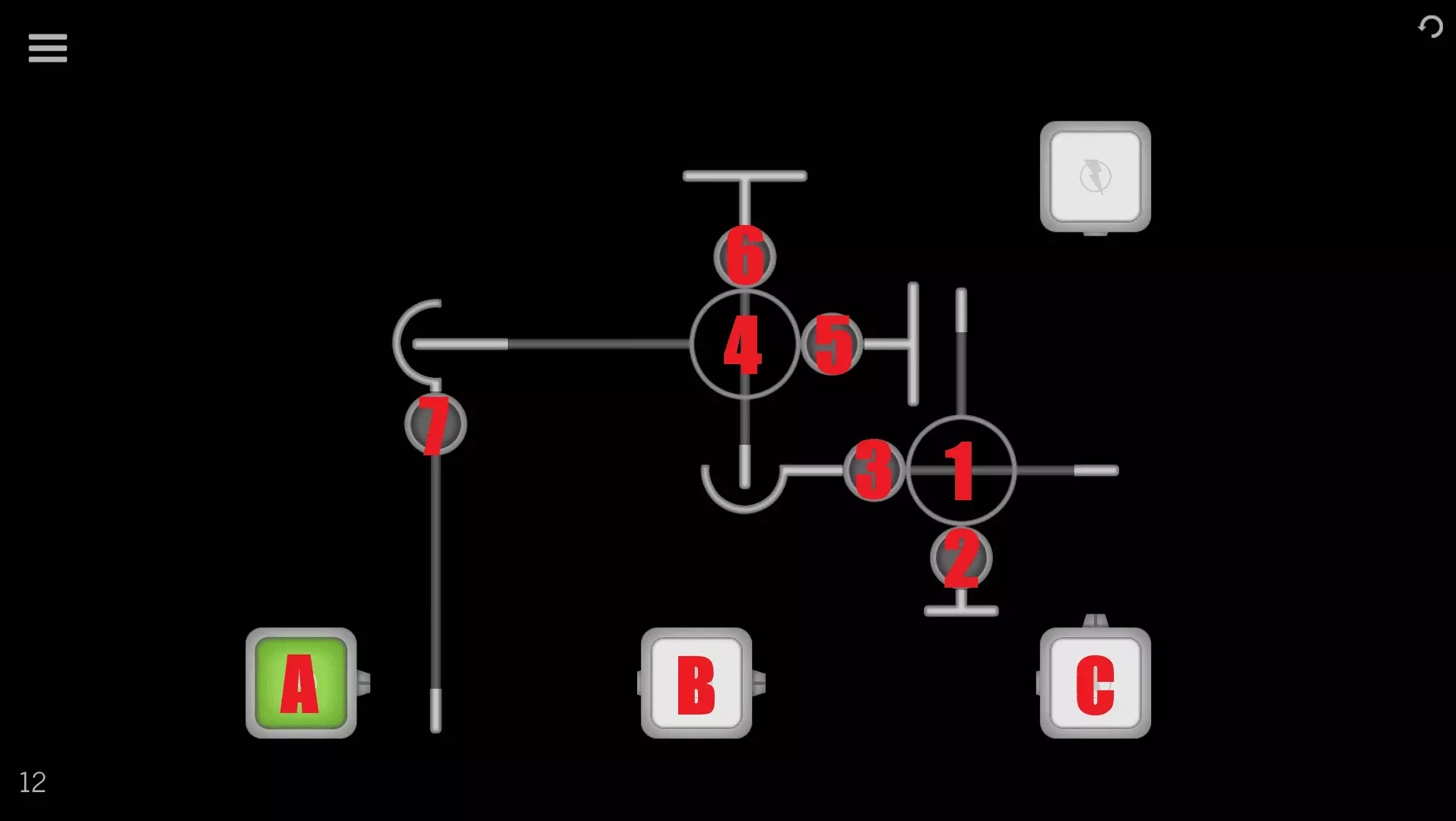 1→2→A→2→1→3→B→C→ 4→5→D→5→4→6→E 第12关