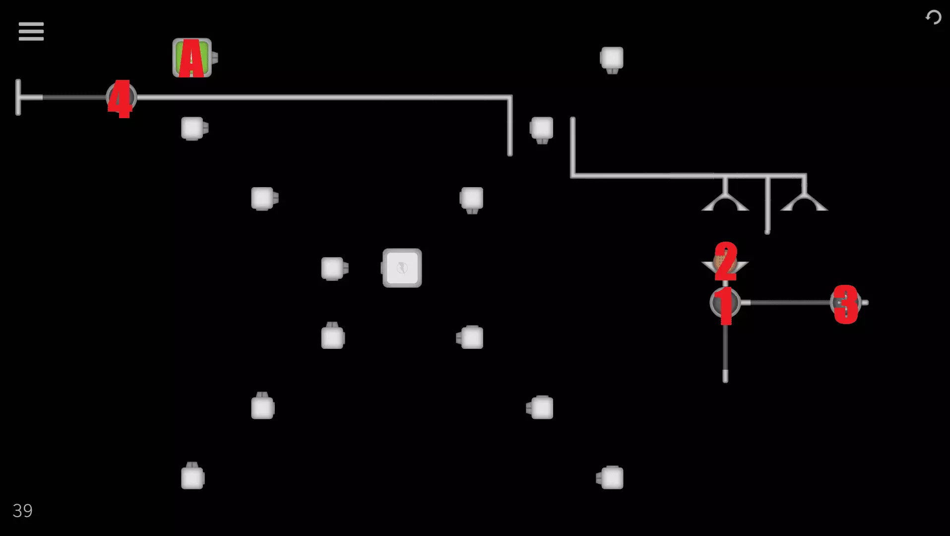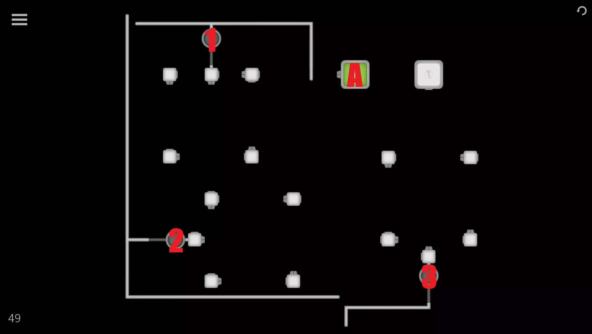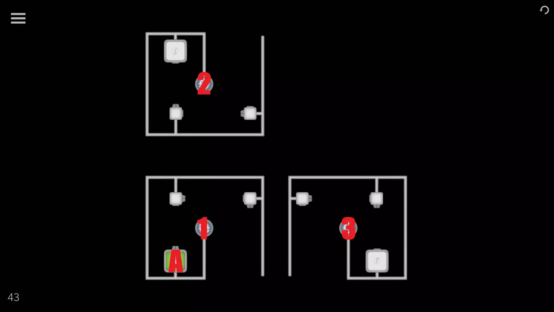 1→2→3→ 1→3→1→3→1→3→1→3→ 1→3→1→3→1→3→1→3→ 1→A (“1→3”重复8次) 关卡42