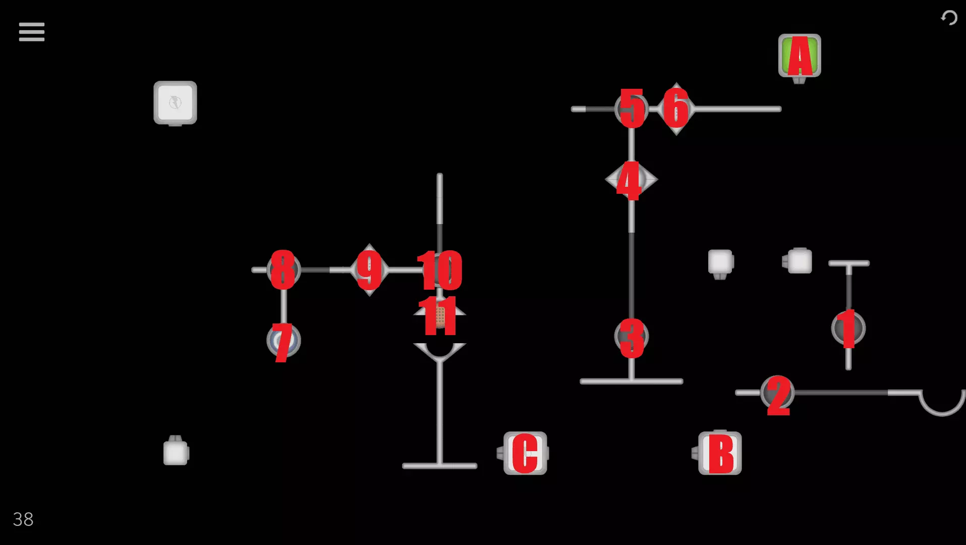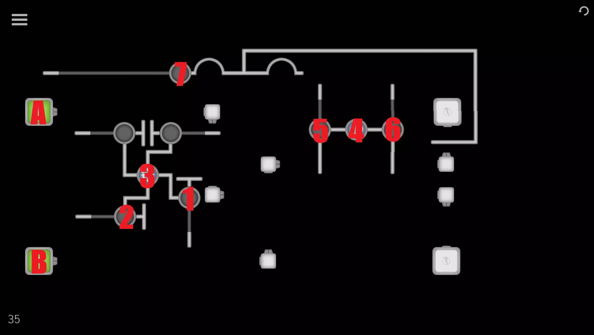 1→2→3→3→A→ 4→4→7→5→6→B 关卡36-40 关卡36