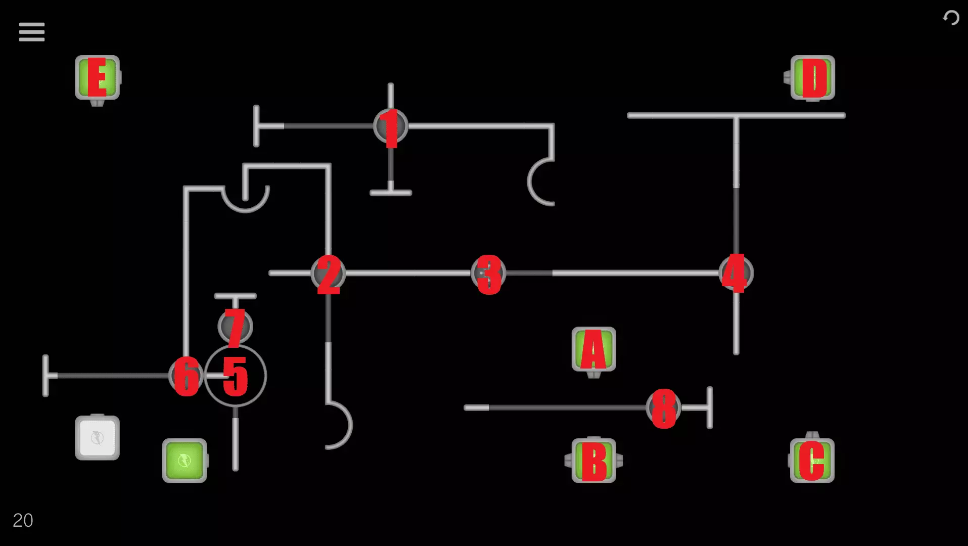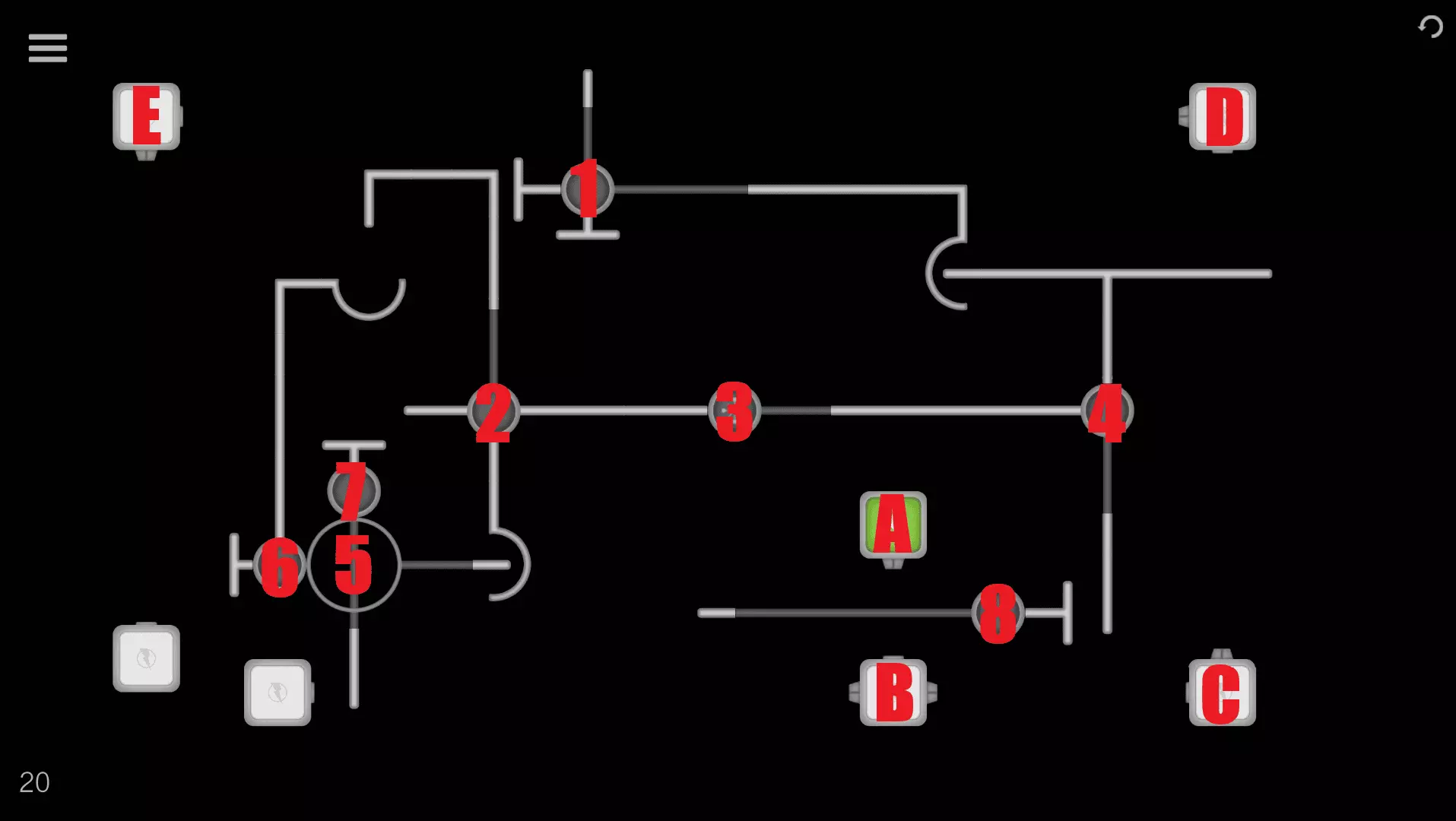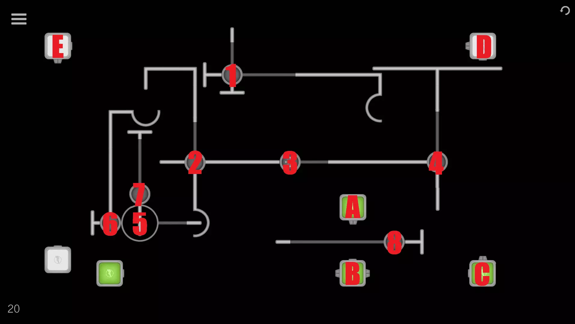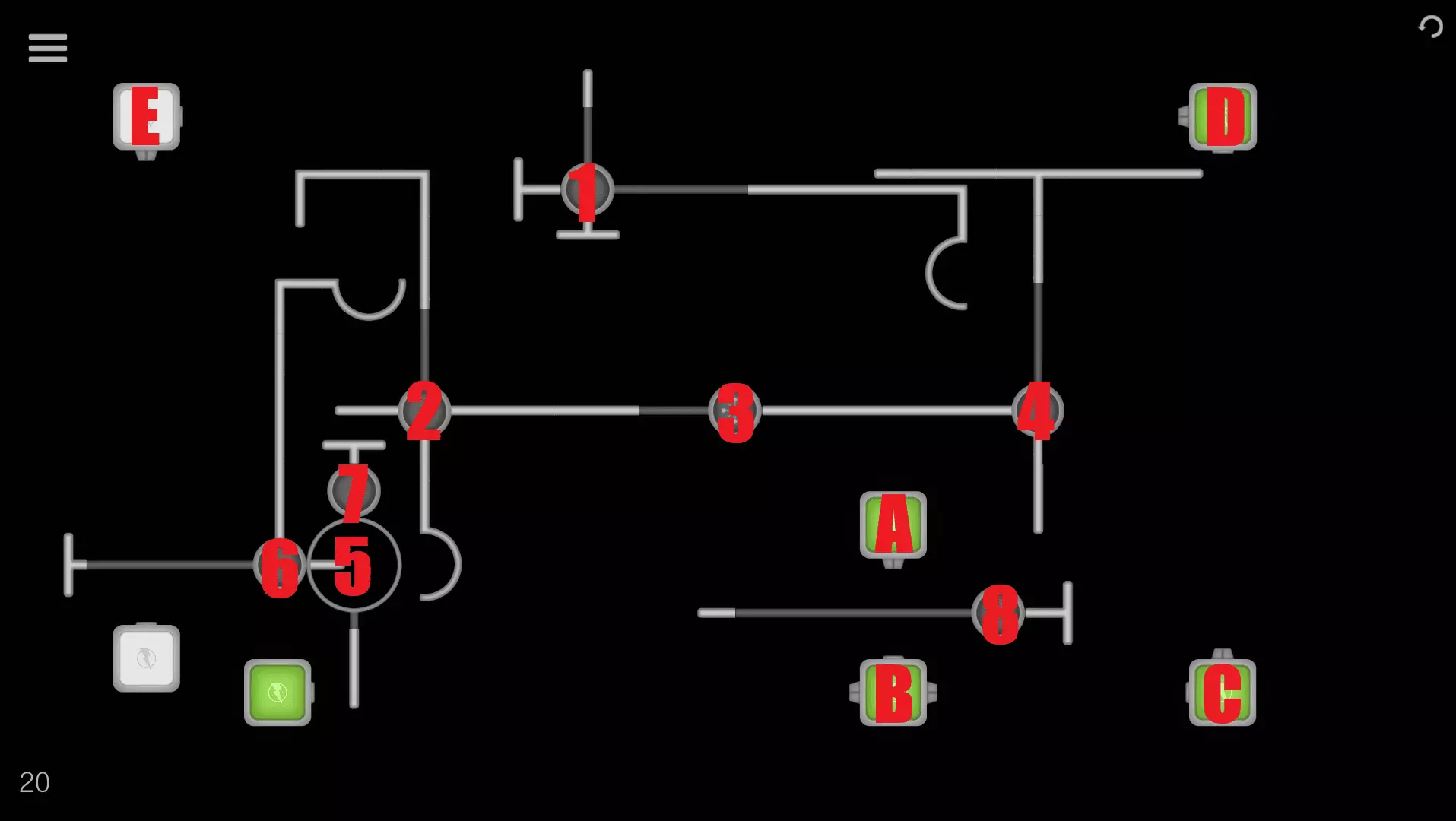 1→2→A→B→C→5→6→3→D 关卡16-20 关卡16