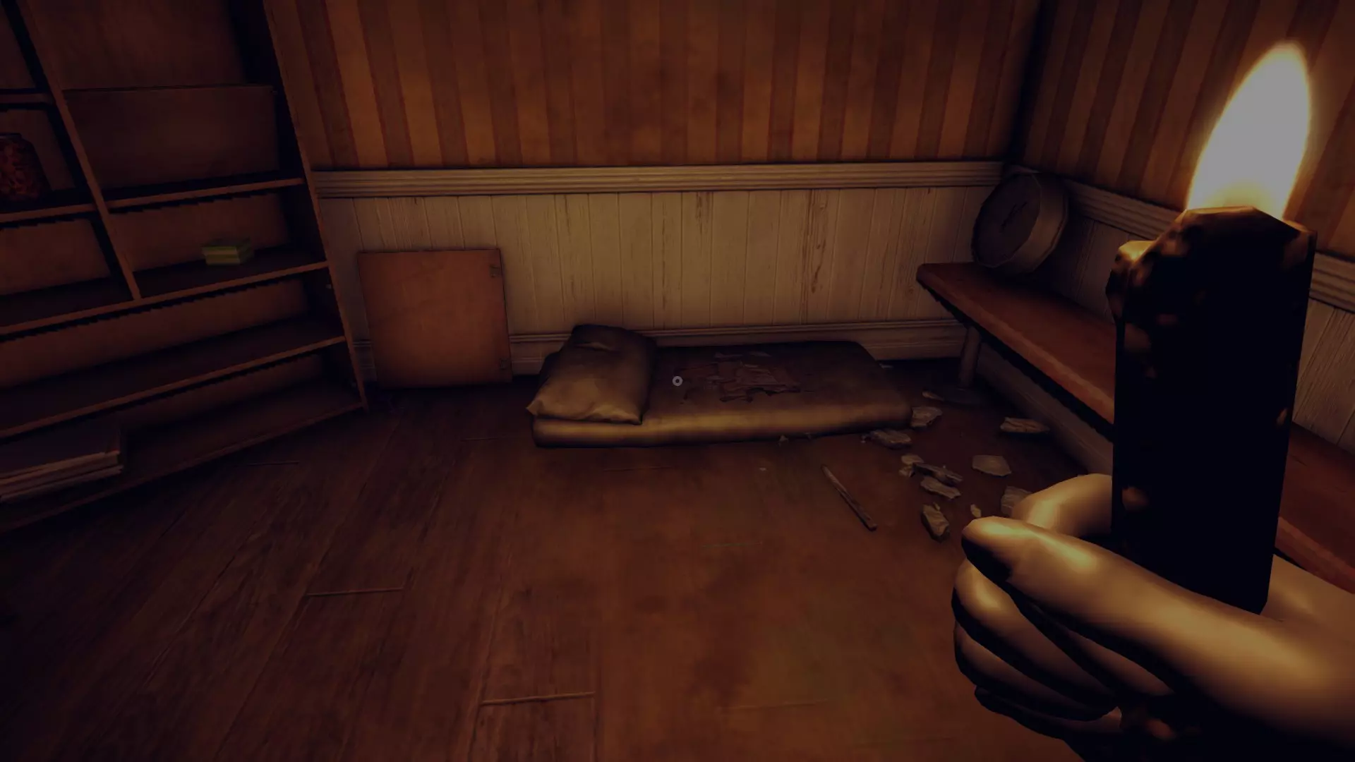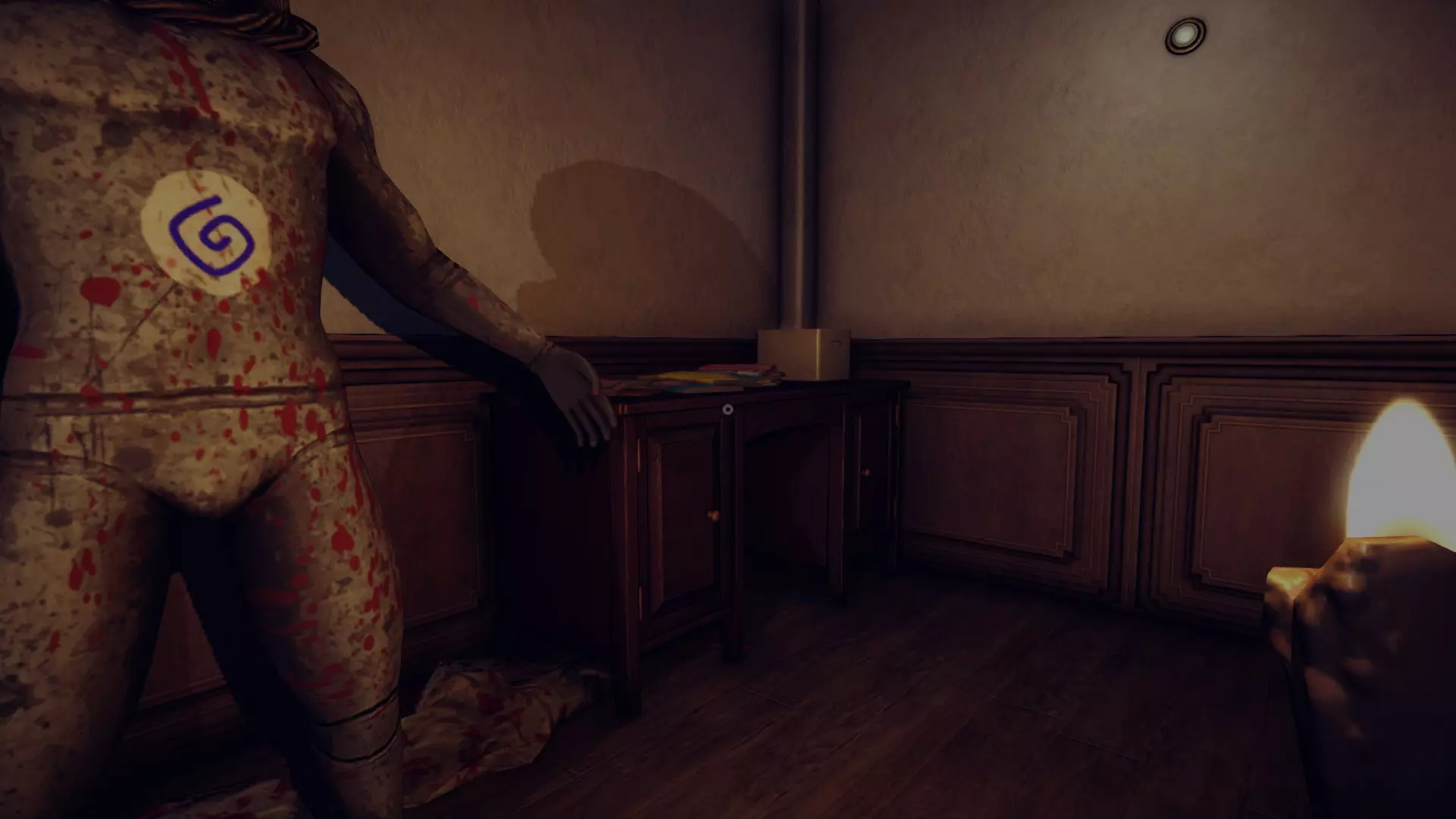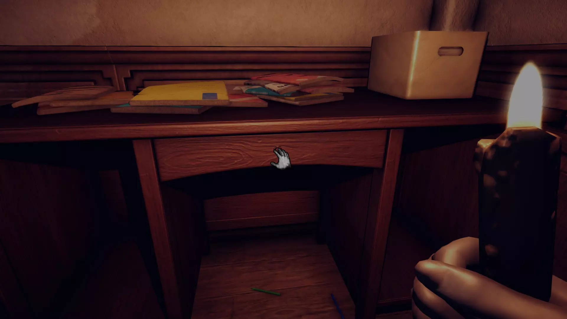 在第6章,爬上楼梯,盖住人体模型的头部,这样它就不会吹灭你的蜡烛。然后找到安迪留给你的、地上放着蜡笔的那张书桌,中间的抽屉里有螺丝刀。接着继续前进,从带有蓝色污渍的人体模型后面的通风管道出去。
