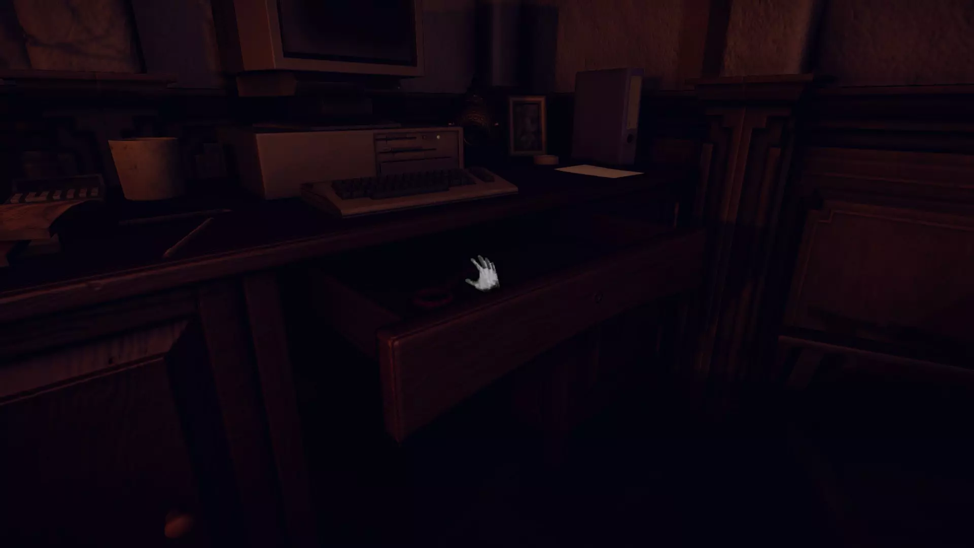 当你穿过管道后,会到达一个秘密房间。沿着走廊前进并向右转,你会看到一张带有显示器的书桌。打开中间的抽屉,拿起红色钥匙。继续前进,直到解救那个女性人体模型。进入下一个房间,找到红色的门并进去。在儿童玩具箱后面,寻找安迪的磁带盒和一个钟表零件,然后爬上通往玩具幻象的楼梯。