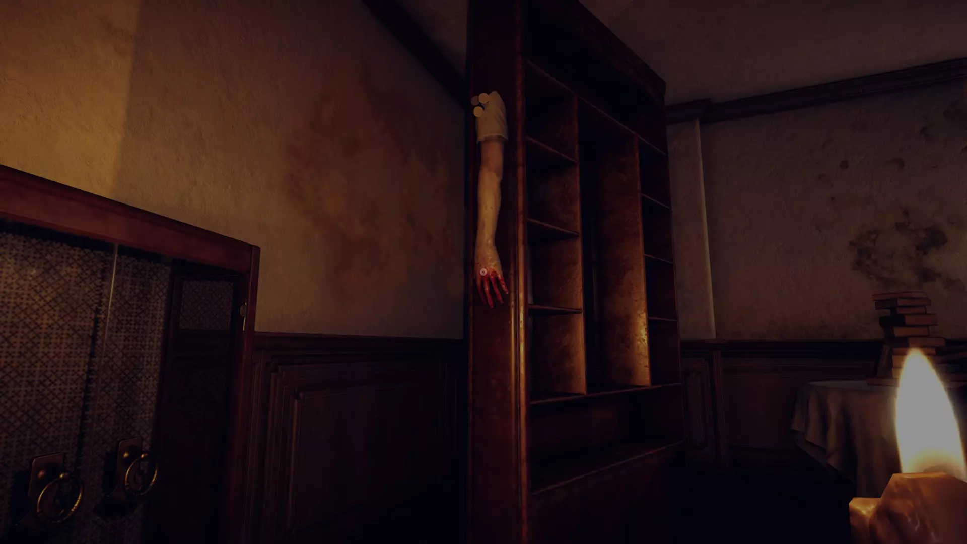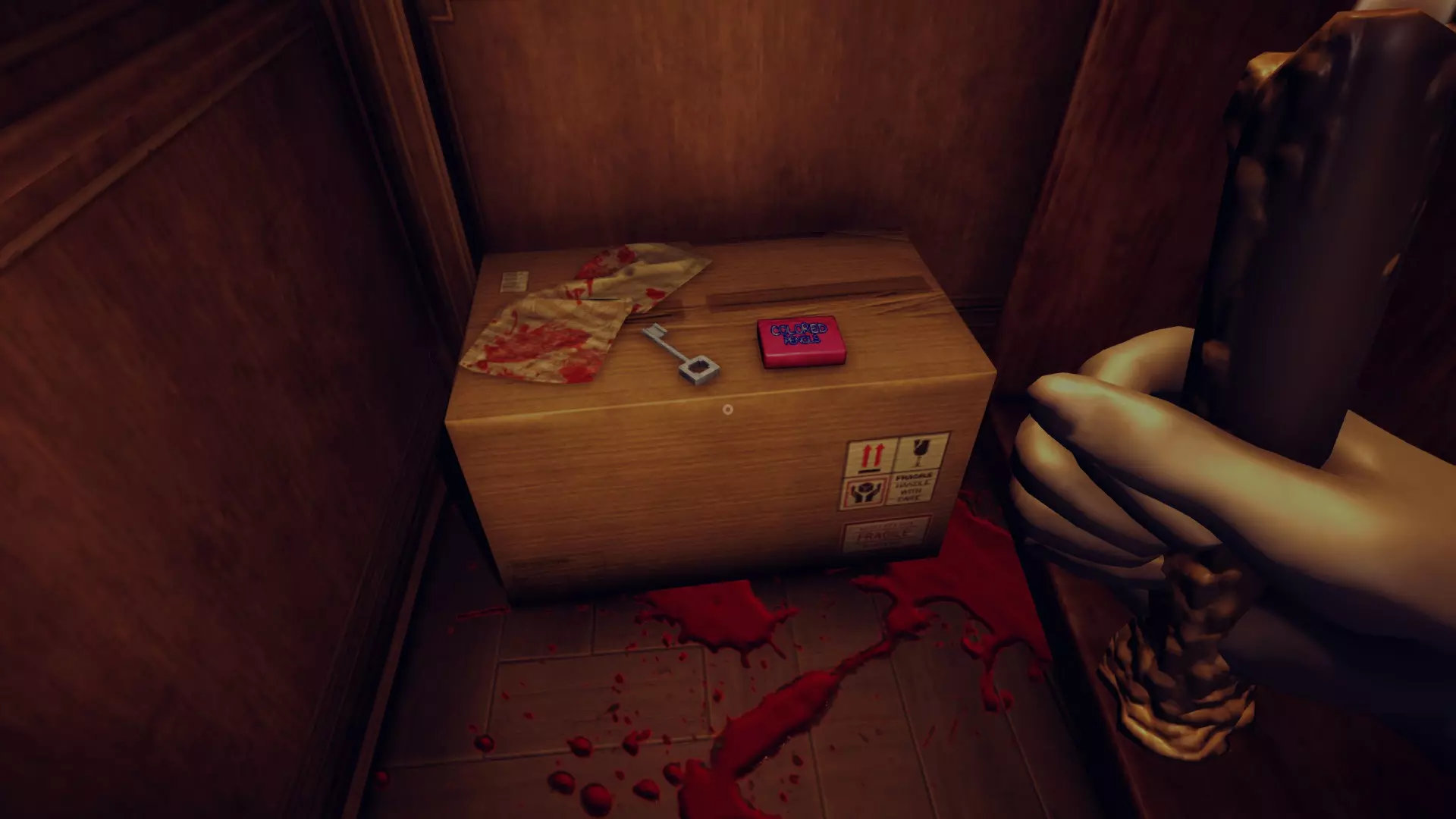 假腿 在第5关,当你遇到无脸女孩莉迪亚时,从左边的走廊进入,继续穿过有端盘子猴子的图书馆,你会看到左手边有一个房间。房间里有一些对着富兰克林画像祈祷的人体模型,在你的左边,一些箱子上面放着假腿。