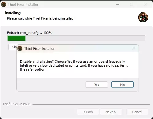 系统会询问是否启用抗锯齿。如果你的电脑配置较低,请选择是。如果你希望保持抗锯齿启用状态,请选择否。