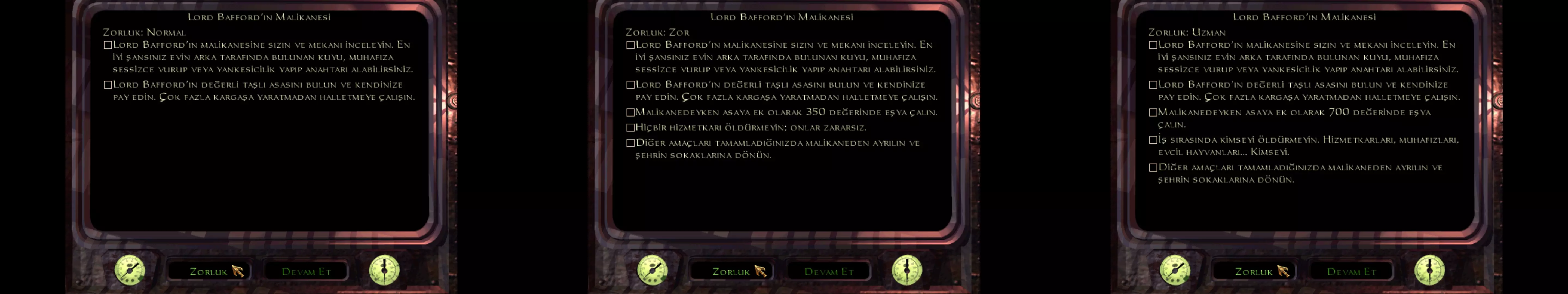 简而言之,专家难度能带来更优质的游戏体验。你不仅能了解到更多真实剧情,游戏时长也会增加。 需要了解的事项:通用 《神偷:黄金版》和《神偷2》通用 记住在每个任务开始时花掉你的钱,因为每关结束后钱会重置。 尝试用剑砍旗帜。旗帜后面可能有秘密房间和通道。 靠近门并按Q或E键,你可以听到里面传来的声音。 为了以防万一,大部分时间使用快速保存,很少手动保存。 游戏中经常按O键查看任务目标很有用。 你可以在地图上点击某个地方,给自己写下特殊笔记。你需要知道的潜行技巧:《神偷:黄金版》与《神偷2》通用 屏幕上的发光宝石显示你的可见度。 始终躲在最黑暗的角落。如果藏身之处光线不够暗,就蹲下。 你不能在藏身之处惊动敌人并直接攻击迎面而来的敌人,他们会发现你。此时,你可以在合适的时机使用ctrl + w组合键用棍棒攻击他们。 只要敌人没看到你,你可以绕到已警觉敌人的身后并用棍棒攻击他们。 有时在战斗中绕到敌人身后可以将其击晕。不要过度攻击,否则他们可能会死亡。 不同地面会发出不同的声音。有些草地完全不会发出声音,而有些草地则会发出很大的声响。预览频道: TFM 预览频道:TFM TFM 适用于《神偷:暗黑计划》《神偷2:金属时代》《神偷3:致命阴影》和《黑暗模组》。 下载站点 下载站点: Taffers Paradise Thief - The last GLASS The Keeper of Metal & Gold Thief Guild DarkFate LadyJo Thiefmissions(已过时) The BoycoT(已过时) 下载站点:Taffers Paradise Taffers Paradise(可从Taffers Paradise下载) 适用于《神偷:暗黑计划》《神偷2:金属时代》《神偷3:致命阴影》和《黑暗模组》。下载站点:Thief - The last GLASS Thief - The last GLASS(可从Thief - The last GLASS下载) 德国《神偷》网站。适用于《神偷:暗黑计划》《神偷2:金属时代》《神偷3:致命阴影》和《黑暗模组》。 下载站点:The Keeper of Metal & Gold The Keeper of Metal & Gold(可从The Keeper of Metal & Gold下载) 适用于《神偷:暗黑计划》和《神偷2:金属时代》。 下载站点:Thief Guild Thief Guild(可从Thief Guild下载) 适用于《神偷:暗黑计划》《神偷2:金属时代》《神偷3:致命阴影》和《黑暗模组》。 下载站点:DarkFate DarkFate(可从DarkFate下载) 俄罗斯《神偷》网站。适用于《神偷:暗黑计划》《神偷2:金属时代》《神偷3:致命阴影》和《黑暗模组》。 下载站点:LadyJo LadyJo(可从LadyJo下载) 法国《神偷》网站。适用于《神偷:黄金版》《神偷2》《神偷3》和《黑暗模组》。 下载网站:Thiefmissions 该下载网站已停止更新。除非必要,否则不建议使用。 Thiefmissions(可从Thiefmissions下载) 已停止更新。适用于《神偷:黄金版》《神偷2》《神偷3》和《黑暗模组》。 下载网站:The BoycoT 该下载网站已停止更新。除非必要,否则不建议使用。 The BoycoT(可从The BoycoT下载) 适用于《神偷:黄金版》《神偷2》和《神偷3》。 攻略、战利品列表和流程视频 攻略、战利品列表和实机演示视频……全都集中在一处! fortuni的页面包含所有攻略、战利品列表和播放列表。 若无法正常运行 你在游戏过程中可能会遇到问题,例如任务目标无法完成或角色无法移动。 NVScript 1.3.0(可从TTLG获取) 作者:Nameless Voice 安装NVScript的方法:从NVScript127-T1中提取NVScript. 制作 为此,你应该参考DromEd教程。 教程(可从TTLG获取) 《Through the Looking Glass》总标题。你可以在这里找到许多链接。 《神偷2》任务创建绝对新手指南(可从TTLG获取) 由nicked编写的指南。对新手会很有用。 》(可从TTLG获取) 由KOMAG编写的指南。本指南对新手也会很有帮助。 Spike14的《DROMED完全教程》(可从TTLG获取) 由Spike14编写的指南。虽然视觉效果不佳,但包含有用的内容。 sNeaksieGarrett的Dromed视频教程(可从TTLG获取) Sneaksie的视频系列。虽然内容不多,但能满足需求。让我们驯服野兽卓梅德 让我们驯服野兽卓梅德(第一部分) 让我们驯服野兽卓梅德(第二部分) 让我们驯服野兽卓梅德(第三部分) 让我们驯服野兽卓梅德(第四部分) 让我们驯服野兽卓梅德(第五部分) 这是戴尔的视频系列。我必须说,这是你能找到的最棒的视频系列。 任务作者资源 技术问题与解决方案 一些技术问题和解决方法 如果你正在使用AngelLoader,则无需执行以下操作。你可以在AngelLoader的模组部分进行操作。 解决此问题的方法是禁用模组。要禁用这些模组,请前往你的游戏主文件夹。打开此处的cam_mod文件。你会看到类似示例中的代码。 mod_path mods+mods packfix+mods candles+mods EP Thief1+NecroAge Thief1+NecroAge+EP2 Thief1+EP2+mods+mods t2skies+mods EP+FMdml 这行代码会识别游戏中从哪些文件夹读取模组。简而言之,加号后面会引入另一个模组,斜杠后面会引入文件夹内部的内容。我们要做的是复制除FMdml之外的所有代码。当然,你的代码可能有所不同。 mods+mods packfix+mods candles+mods EP Thief1+NecroAge Thief1+NecroAge+EP2 Thief1+EP2+mods+mods t2skies+mods EPA 如你所见,我没有获取FMdml模组。什么是FMdml?任务或角色会卡住。 在AngelLoader中,进入编辑HG。将该代码粘贴到禁用模组框中。 游戏内字体看起来很小。如何调大? 打开cam_ext。在游戏主文件夹中找到配置文件,并按示例修改以下代码。 ;d3d_disp_scaled_2d_overlay 64 d3d_disp_scaled_2d_overlay 64 或者按示例修改以下代码。 ;d3d_disp_scaled_2d_overlay 1024 640 d3d_disp_scaled_2d_overlay 1024 640 游戏内字体将会变大,若你不喜欢该大小,可自行调整数值。如果你使用1920