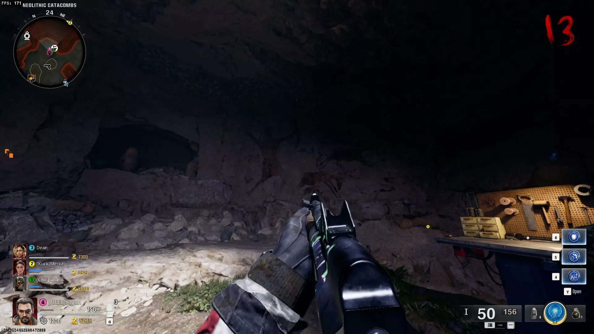 步骤2:罗马数字墙 每个房间中都有灯笼,其中一些灯笼会被紫色火焰水晶点亮。射击这些灯笼,直到位于工作台所在的新石器时代地下墓穴中的灯笼被点亮。