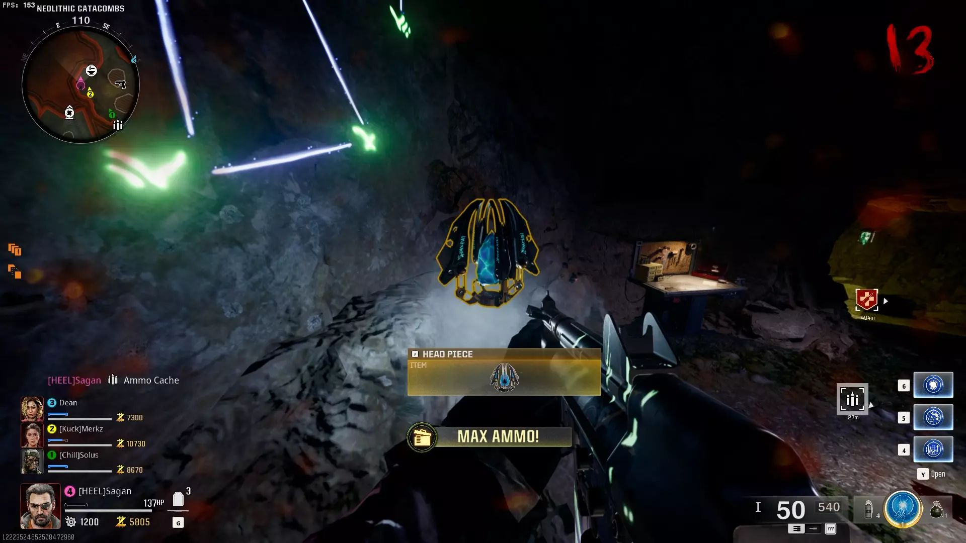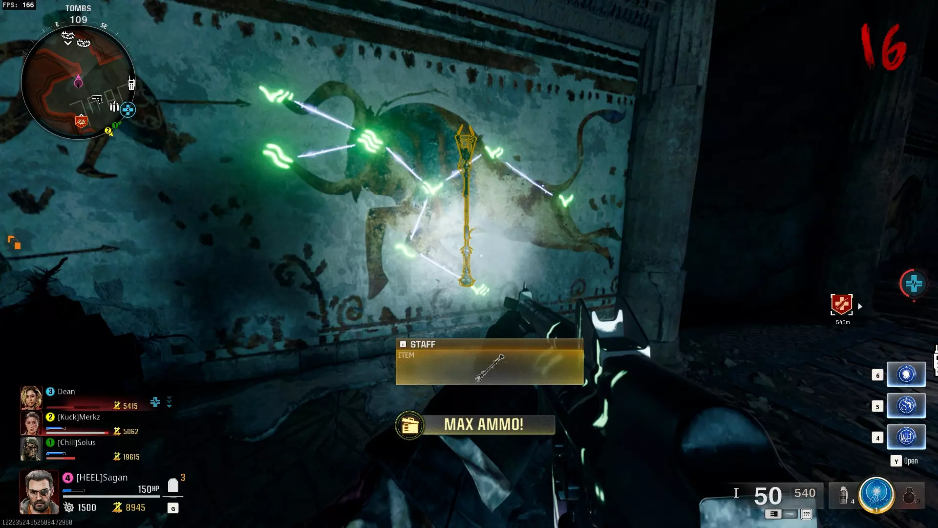 步骤3:寒冰法杖 收集完制作【寒冰法杖】的所有部件后,前往【黑暗以太枢纽】——也就是 Pack-a-Punch 机器所在的位置。在中央祭坛的孔洞中插入(按F键、X键或互动键)部件,最终区域封锁程序将启动。