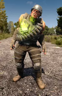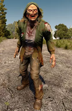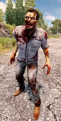 趣味小知识:这个僵尸的原型是2013年在游戏众筹平台Kickstarter上承诺捐赠6000美元的一位男士,他的要求是根据自己的形象设计一个僵尸。在Alpha 20版本之前,它是蜘蛛僵尸,现在则是普通僵尸。他是唯一购买该套餐的支持者。 生命值:125 狂暴状态生命值:300 辐射状态生命值:550 商人僵尸